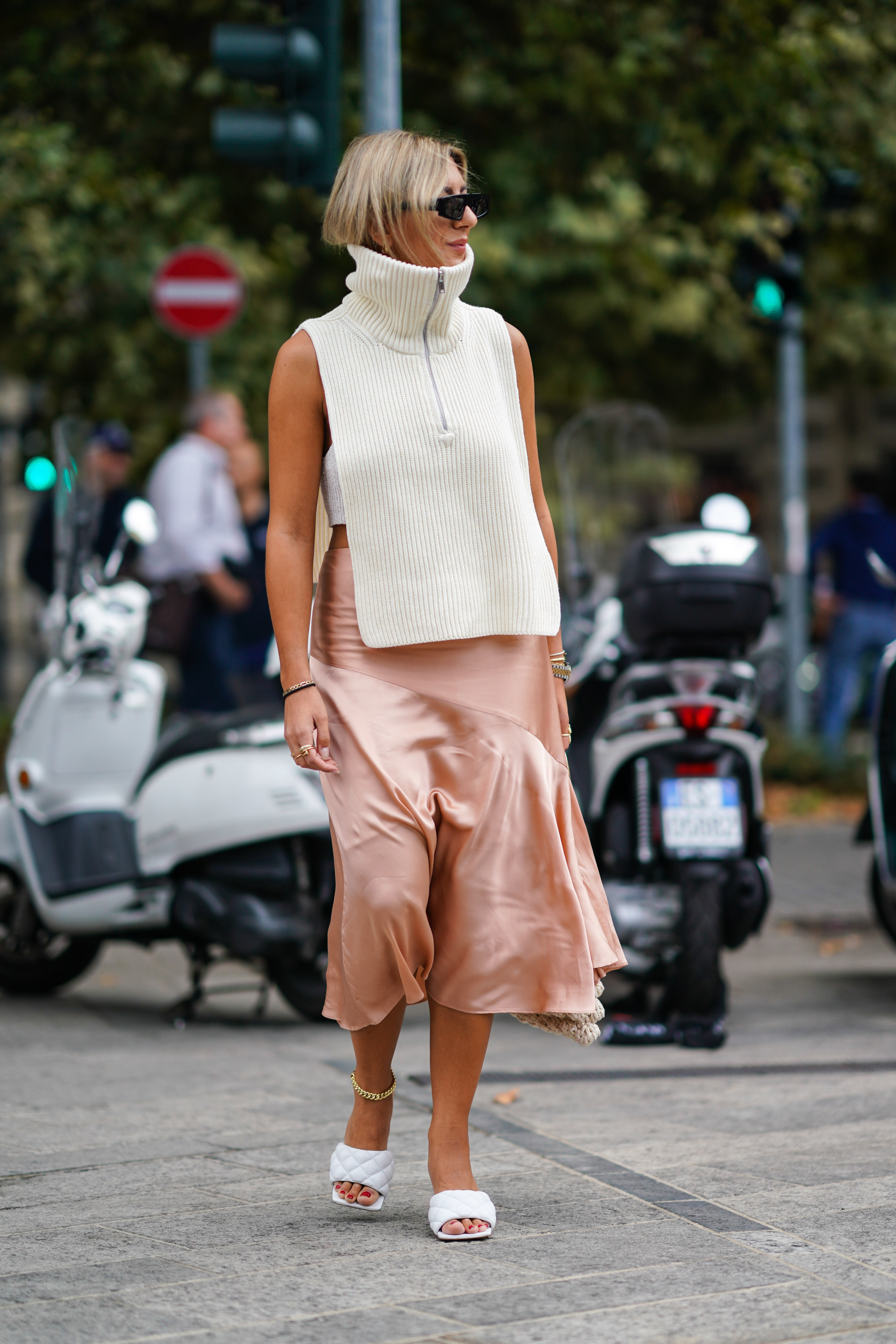 Perhaps the best thing about the new and improved anklet is exactly this, its newfound versatility. Unlike its predecessor who felt the constraints of seaside dressing (aka the Bali family holiday), the modern anklet can be applied to pretty much any outfit, at any time – instantly elevating a look. While a heeled mule is its sartorial best friend, layering an anklet atop a wrap sandal (either heeled or flat) adds a level of interest and fashion credibility. Or for the ultimate dash of fashion irony, added to a thong heel – two ‘90s heavyweights together again at last. Even on a chilly day in Paris, fashion week attendees dressed up Mary-Janes and chunky penny loafers with the ankle chain, proof the anklet can still be a powerful accessory in winter, too.