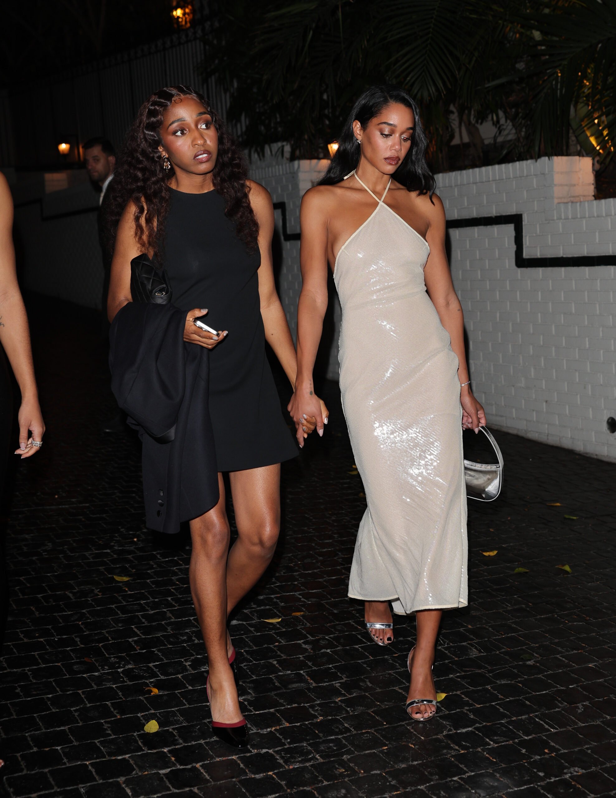 After dazzling on the runway at Vogue World: Hollywood, Ayo Edebiri and Laura Harrier proved that post-show glamour can take very different forms. Yesterday, the duo arrived hand in hand at the Chateau Marmont after-party, perfectly embodying both the minimal and the maximal with a vintage flair.