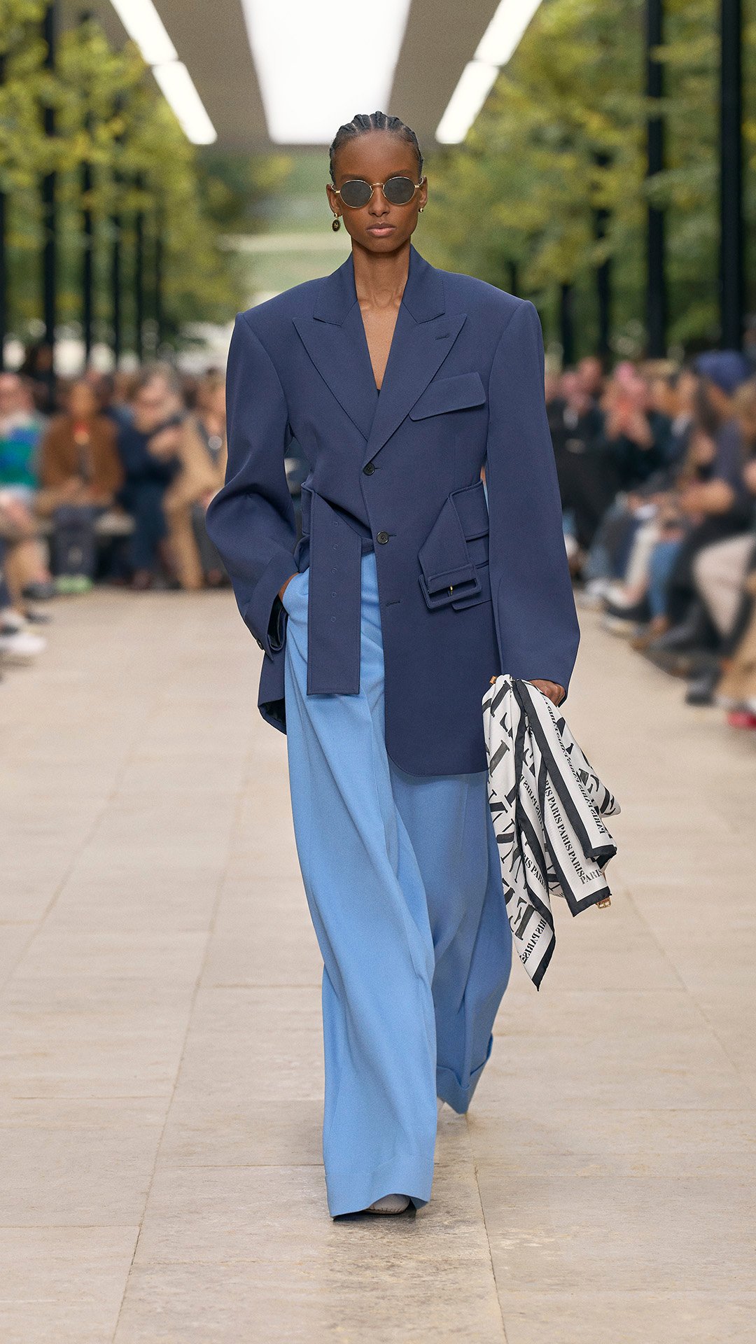 For Spring/Summer 2026, Rider honed his preppy-bourgeois lexicon with newfound confidence and lightness. The satin scarves that became the instant icons of his debut returned, knotted over shoulders and threaded through belts and other accessories. Navy blazers and equestrian chinos mingled with printed minidresses, layered jewellery and belts that could speak to both polish and play. It was a wardrobe for the woman who can be the life of the party just as well as she can host one.