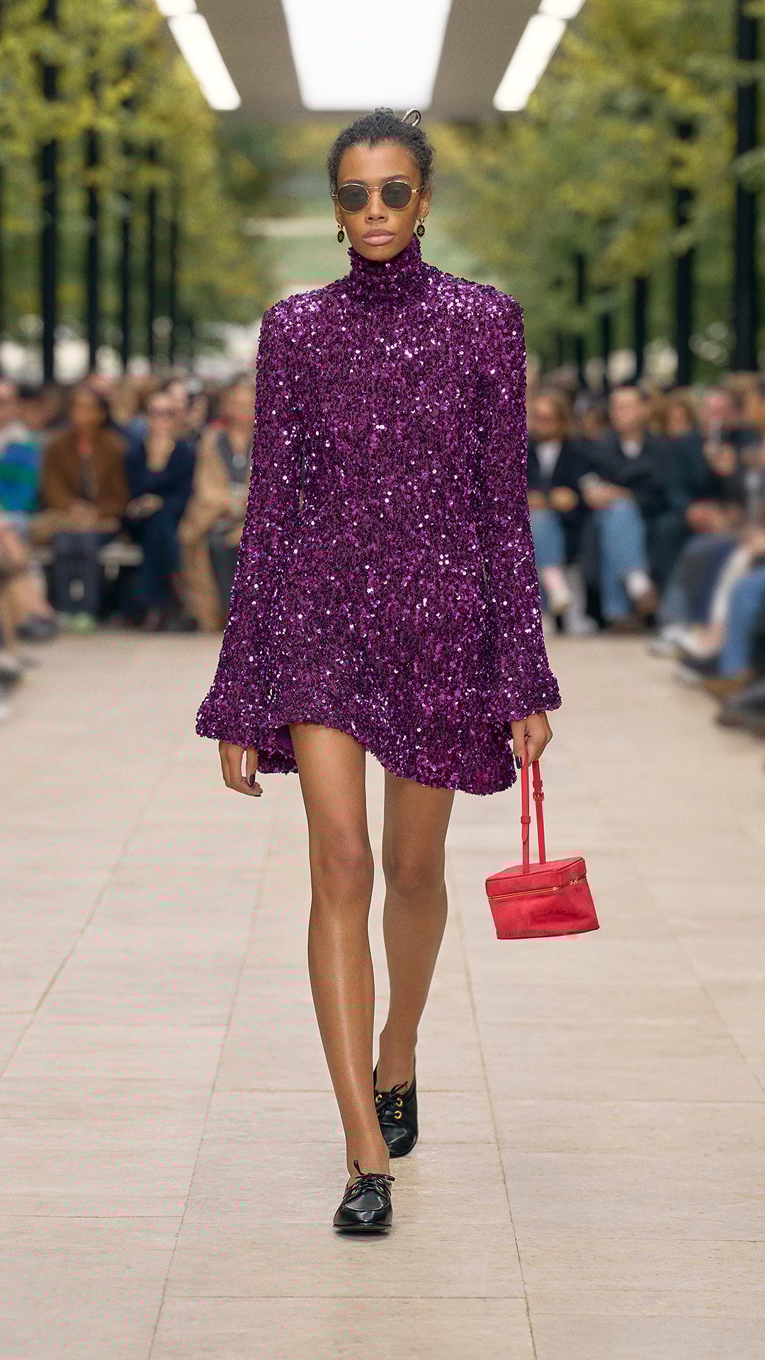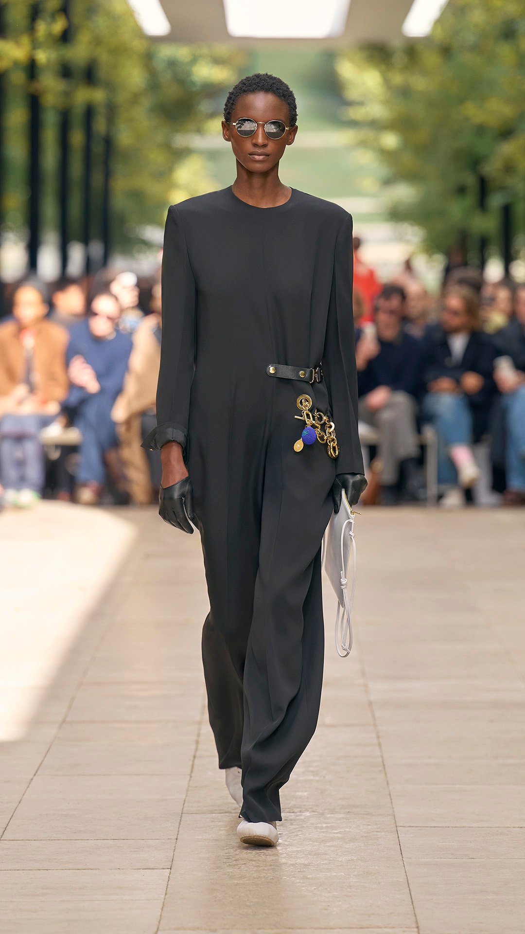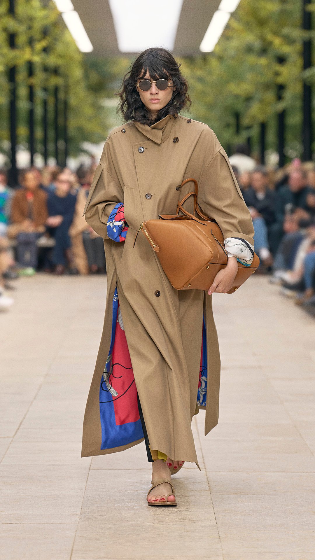 For Spring/Summer 2026, Rider honed his preppy-bourgeois lexicon with newfound confidence and lightness. The satin scarves that became the instant icons of his debut returned, knotted over shoulders and threaded through belts and other accessories. Navy blazers and equestrian chinos mingled with printed minidresses, layered jewellery and belts that could speak to both polish and play. It was a wardrobe for the woman who can be the life of the party just as well as she can host one.