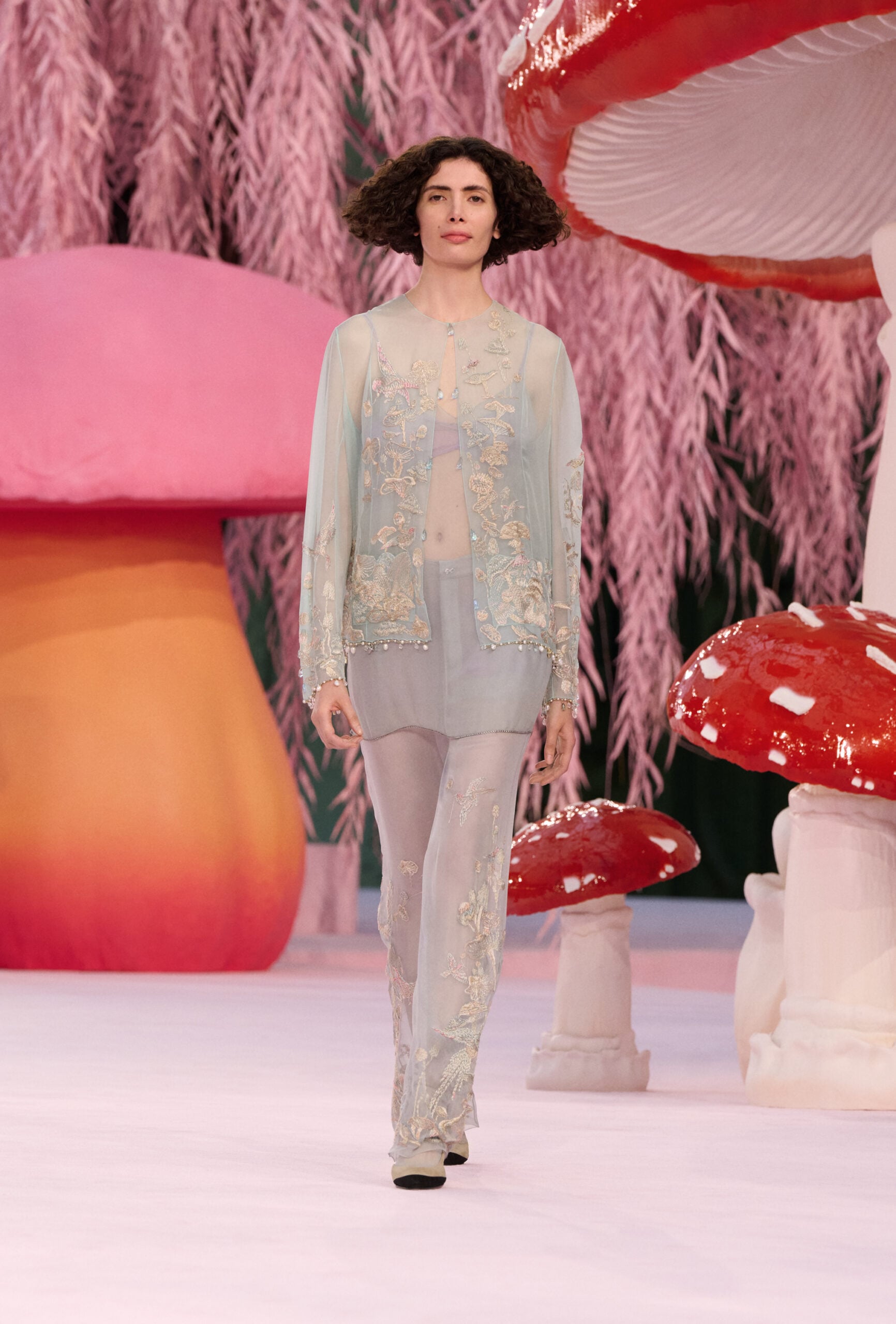 Following triumphant ready-to-wear and Métiers d’Art debuts, Matthieu Blazy faced a fresh challenge with his first haute couture collection—not only as Chanel’s new creative director, but ever. But under a whimsical canopy of towering mushroom caps and pink weeping willows, the designer once again exceeded the hype, presenting an enchanting Spring/Summer 2026 Haute Couture show that will live on in our minds.