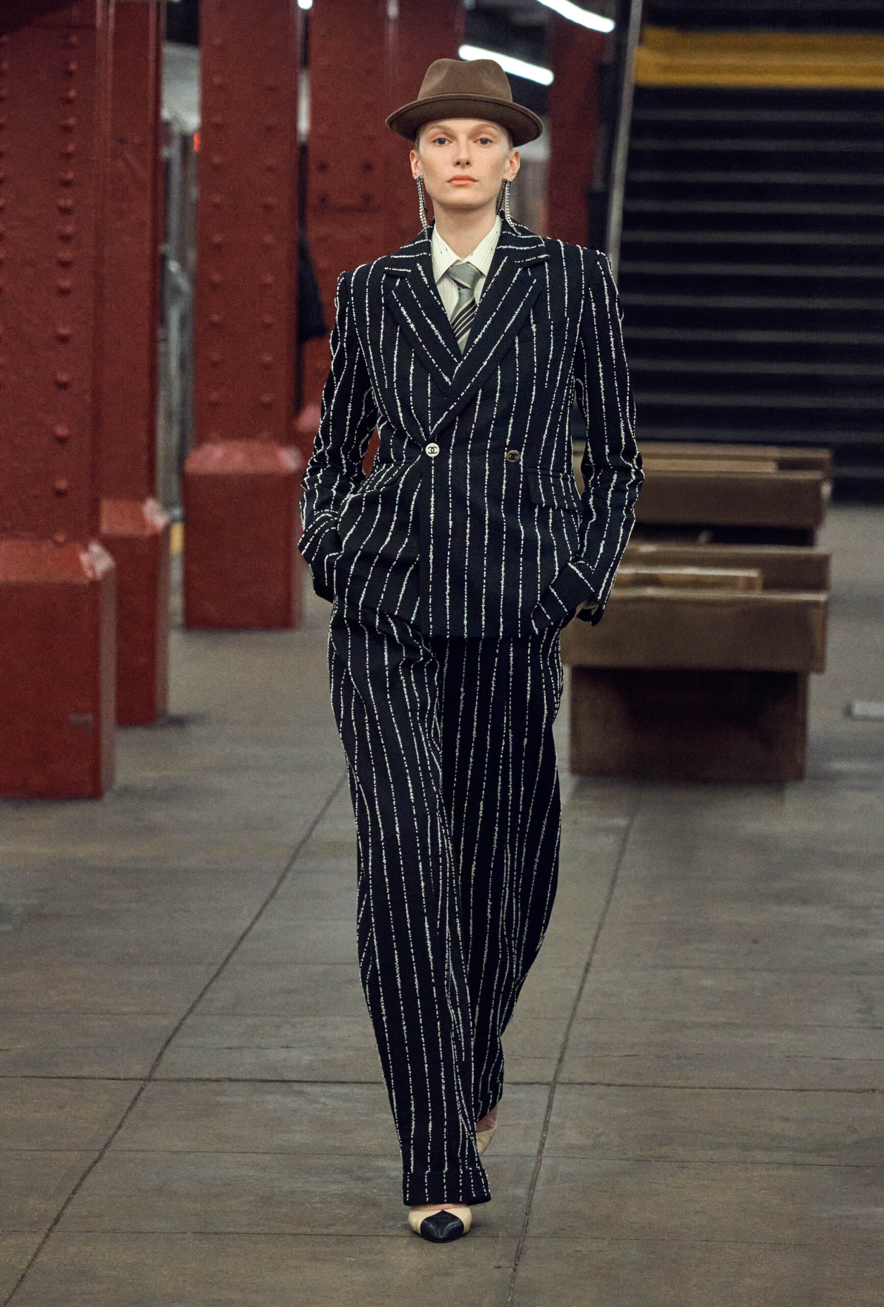 For this, Blazy leaned into that cinematic energy with a gleeful clash of archetypes. Pinstripes for power players, neon animal-print skirt suits for club kids, feathered gowns for showgirls, and coats with enough presence to stop downtown traffic. Chanel’s ode to New York unfolded as a celebration of the extraordinary hiding within the everyday—made possible by the extraordinary savoir-faire of the Maisons d’art.