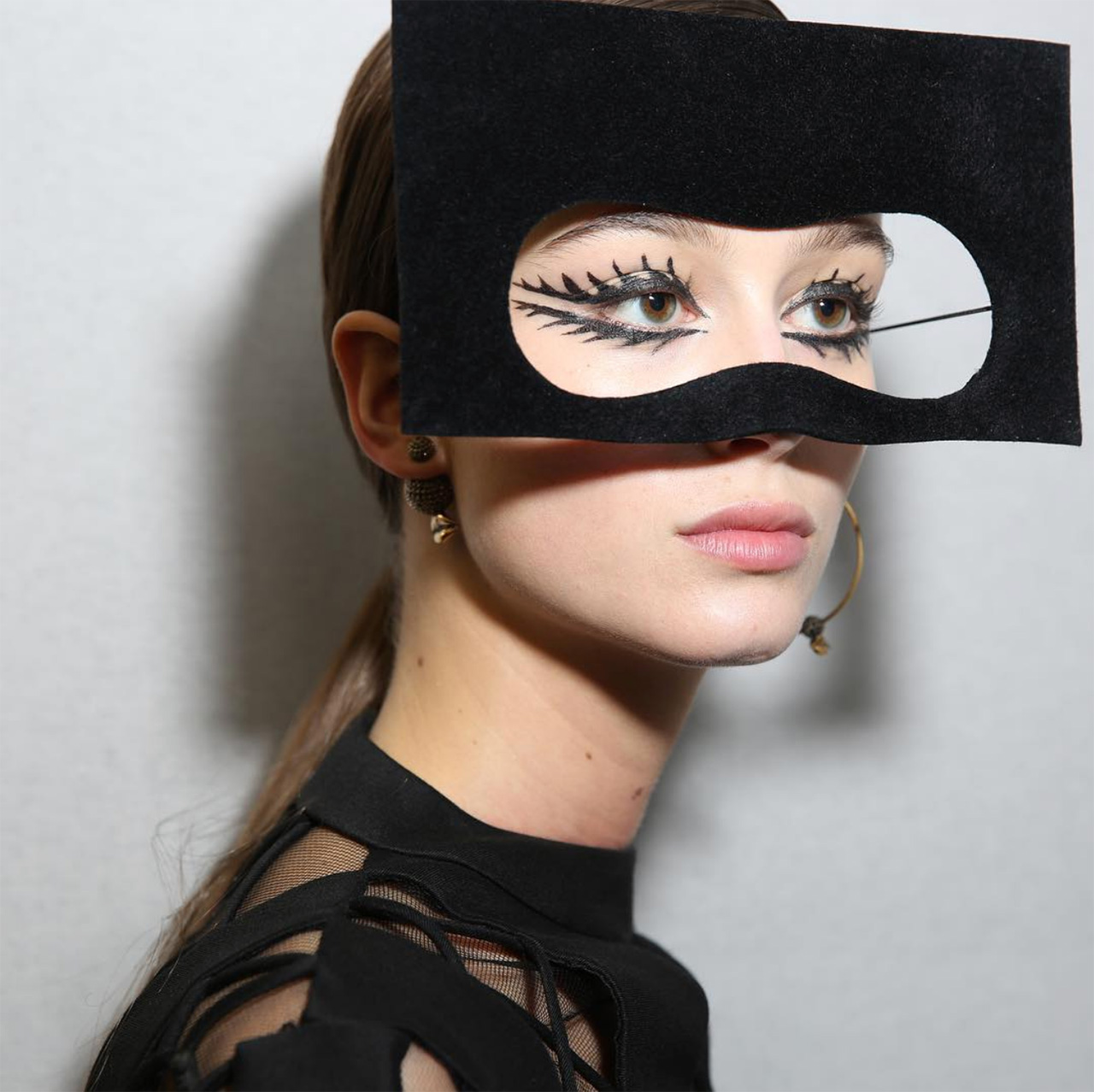 And what eyes they were. Designed by Dior’s Creative and Image Director Peter Phillips, he referenced the surrealist works of Salvador Dali, Man Ray and German photographer Grete Stern to create an exaggerated graphic projection of eyelashes.Such muses were integral in the creative process, as Phillips, explains: “Their expressive freedom inspired an extreme, excessive eye design.” With the new matte black Diorshow On Stage Liner, exaggerated flicks were drawn with Twiggy-esque flair; painted upwards and outwards with the utmost precision, they mimicked ’60s lashes – full-bodied, chunky and spidery. “I was inspired by that surrealist works imprinted in my memory as well as some very strong film images,” Phillips notes. “Long, precise lashes were drawn onto the upper and lower eyelids, framing the eyes and stretching excessively towards the temples.”