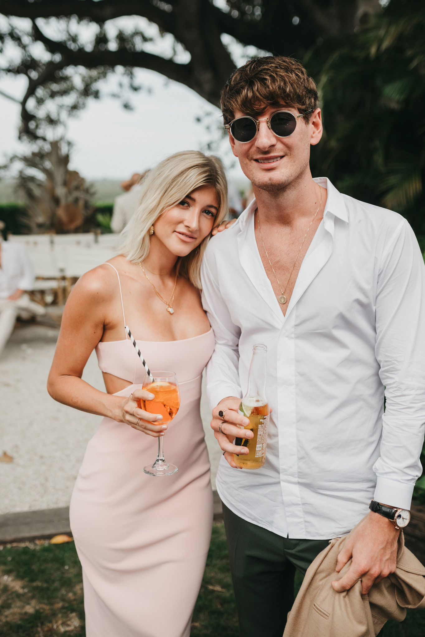 Muehlenbeck and Vato, from the Gold Coast and England in turn, were joined by 100 of their closest family and friends (including yours truly) for the intimate celebration, which was held at popular hilltop wedding spot Fig Tree Restaurant. Known for its incredible vista – a 180-degree view of the sprawling coastline north of Byron Bay’s famous white lighthouse – the venue features a guest house, restaurant, swimming pool, and a giant swing, removed in this case to make way for the make-shift wedding aisle.