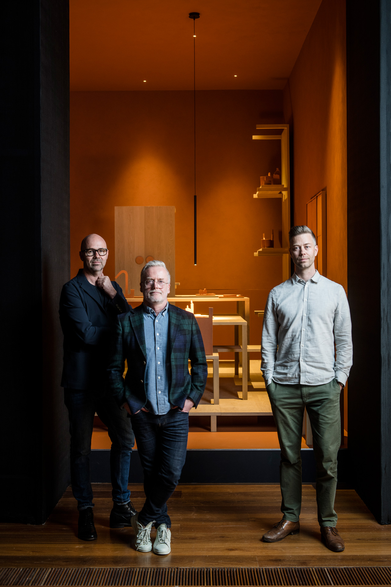 • Designers Hamish Guthrie, Paul Hecker and Josh Watt, associate, in front of The table is the base, 2018 inside the Rigg Design Prize 2018 at The Ian Potter Centre: NGV Australia from October 12 – February 24, 2019