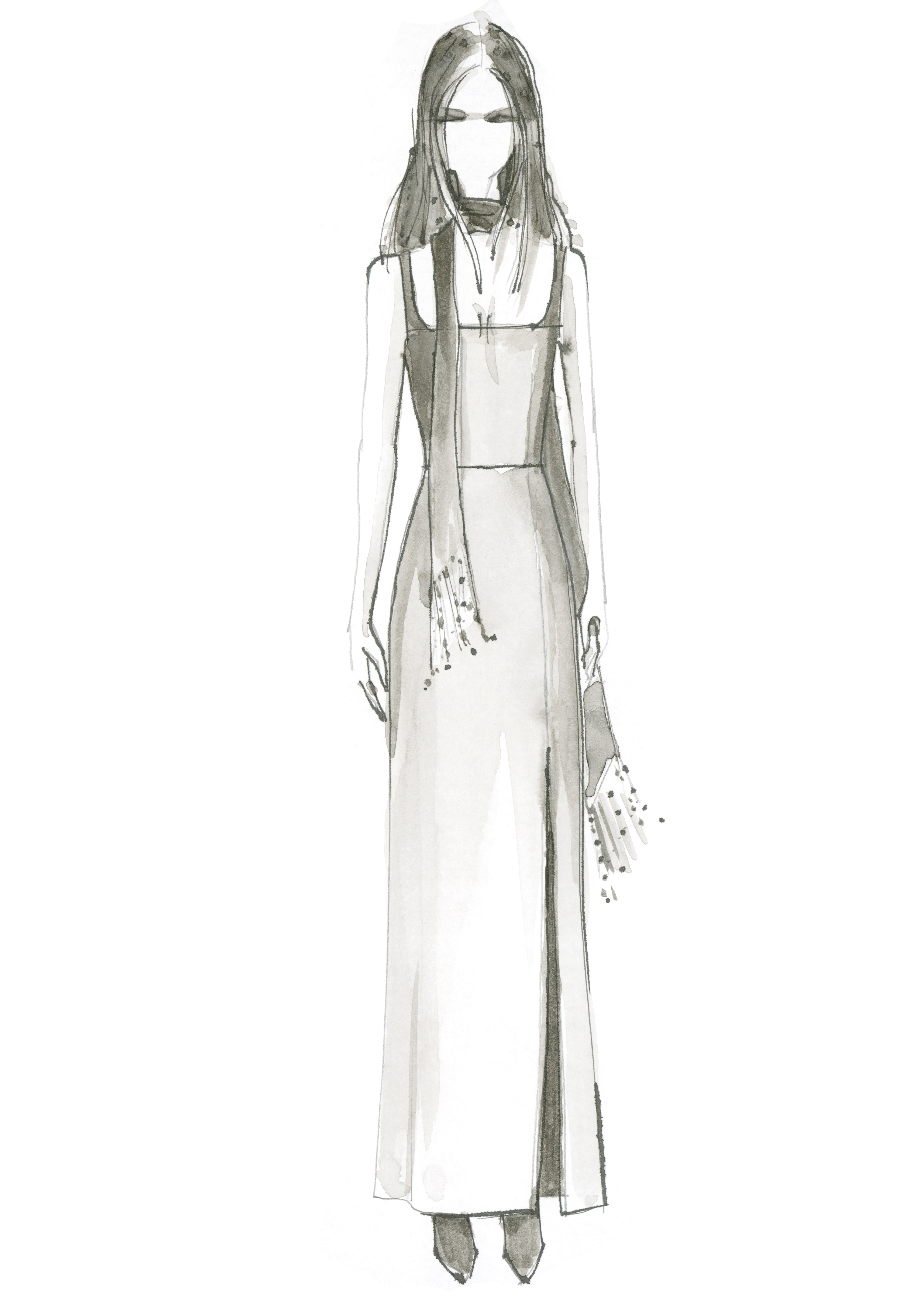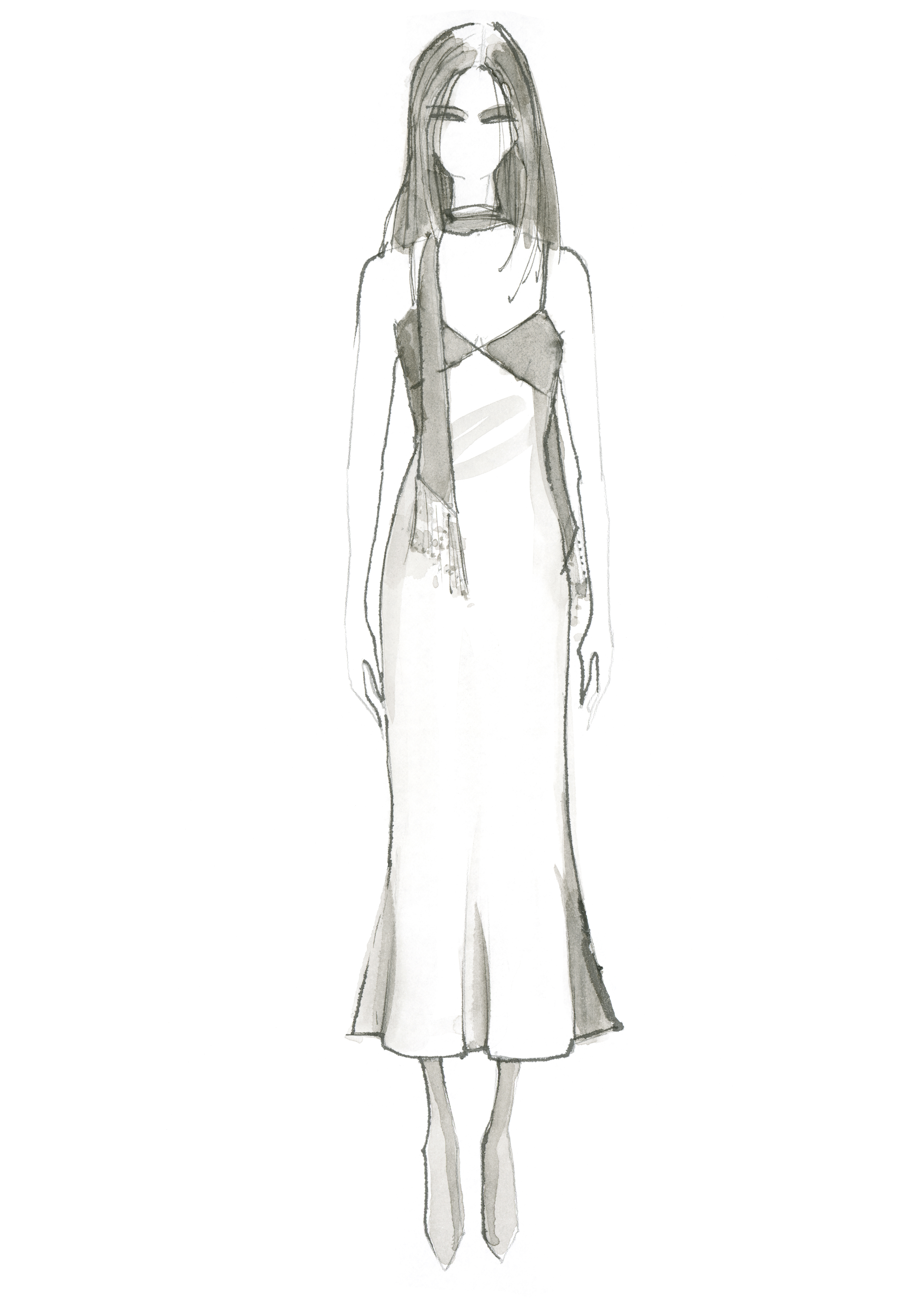 With its all-black palette, the collection is rendered in luxurious fabrications of silk, velvet and lace, with each piece speaking to a moment in time for Julia, reflecting her modern global lifestyle.