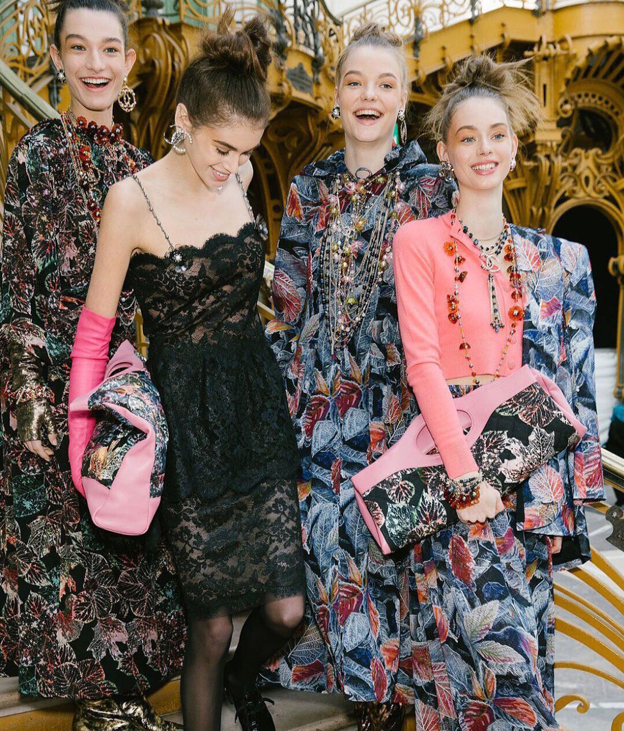 Another season, another Karl-led Chanel extravaganza. Formidable in taking us on a journey; we’ve seemingly been everywhere with him – from Ancient Greece to ’60s Hamburg – this time, we stepped into the woods, Karl’s woods – a forest, imagined by Lagerfeld, enchanted by Chanel. So what does Karl’s forest look like? Autumnal, tawny and slightly eerie; a soft haze fell over the Grand Palais – a stretch of barren trees, a thicket of shrub, creeping moss – damp and green. Then, of course, the carpet of fallen leaves – auburn, sage and rust – every inch of the Grand Palais was blanketed in them. It had both the quietude of nature and the melodrama of Chanel – both treated with beauty.