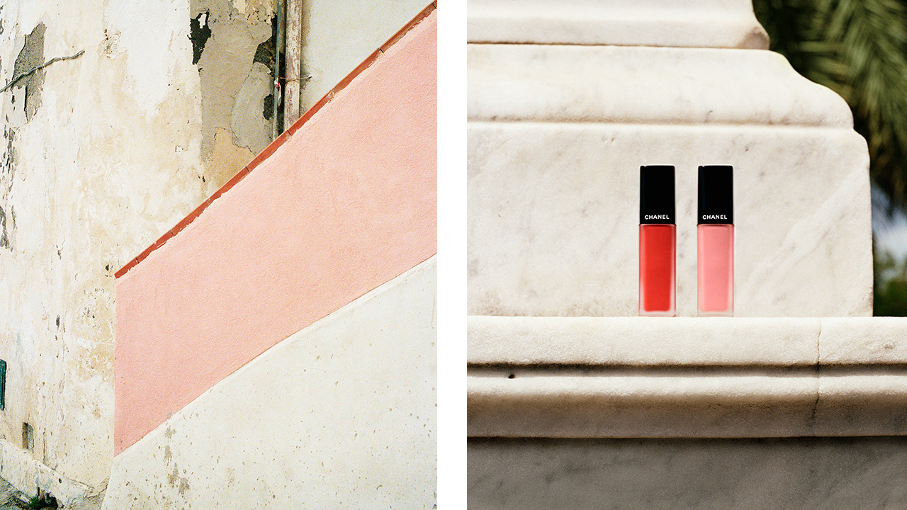 The many faces of the city are reflected in an all-new offering for eyes, lips, face and nails. For the face, inspired by the sunset-washed mountains, the JOUES CONTRASTE blush in Foschia Rosa is a poetic dusting of pink that enlivens the complexion. For eyes, green is the star. The eye collective runs the gamut of green, from dusty grey-green to metal blue-greens, even the residue of volcanic ash plays its part, as does the intricate detailing of local doors.