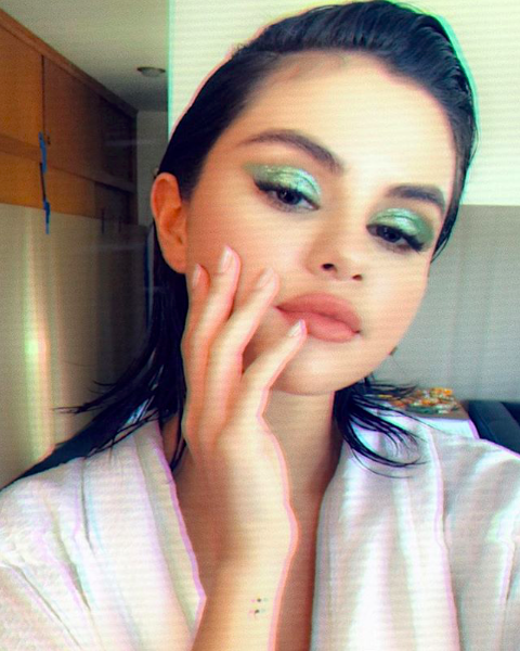 If you needed any further proof that green eyes are huge this year, Selena Gomez is it. Last night, Hung Vanngo posted a photo of a slicked-back Selena with a set of metallic mint lids.
