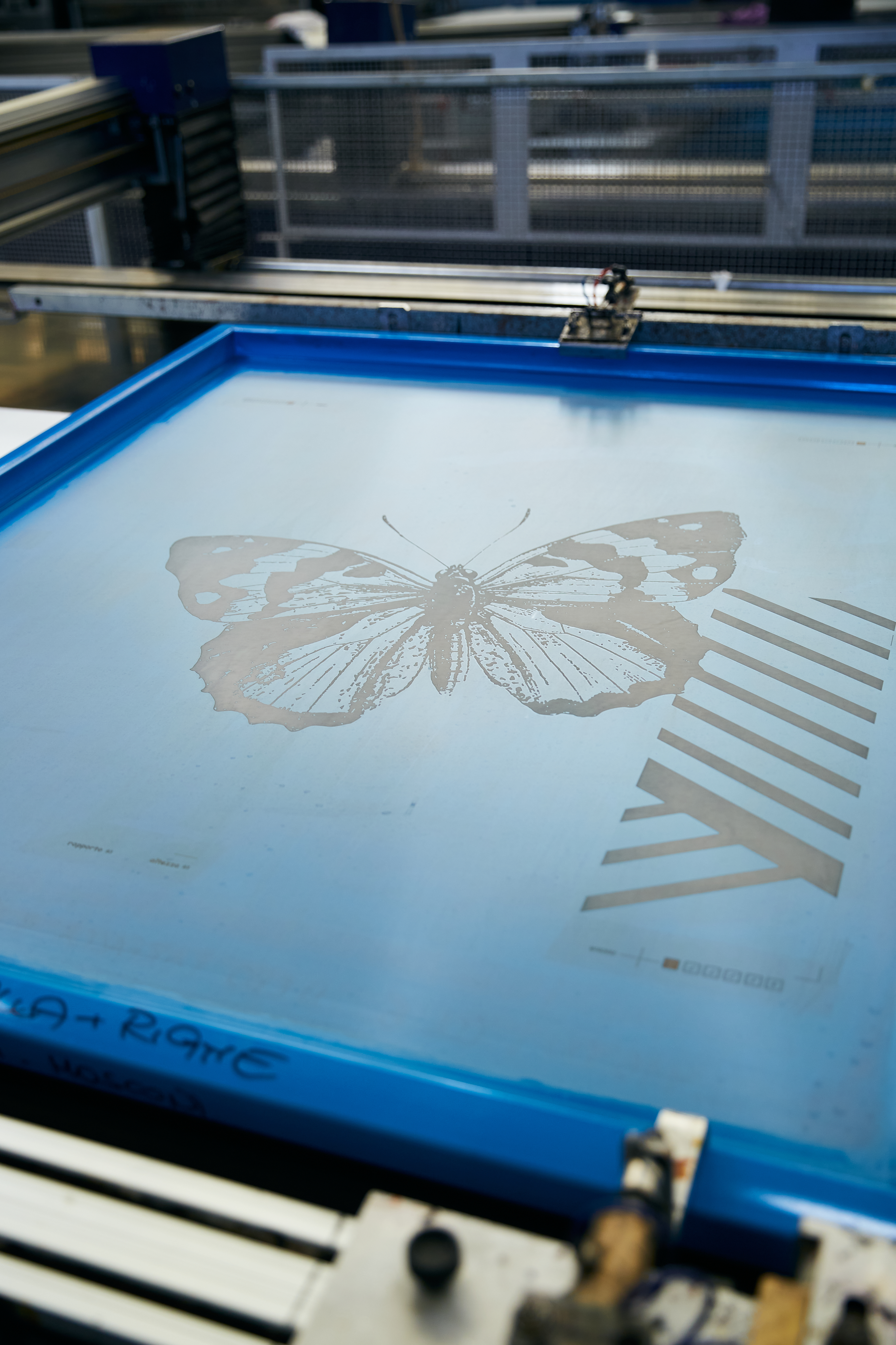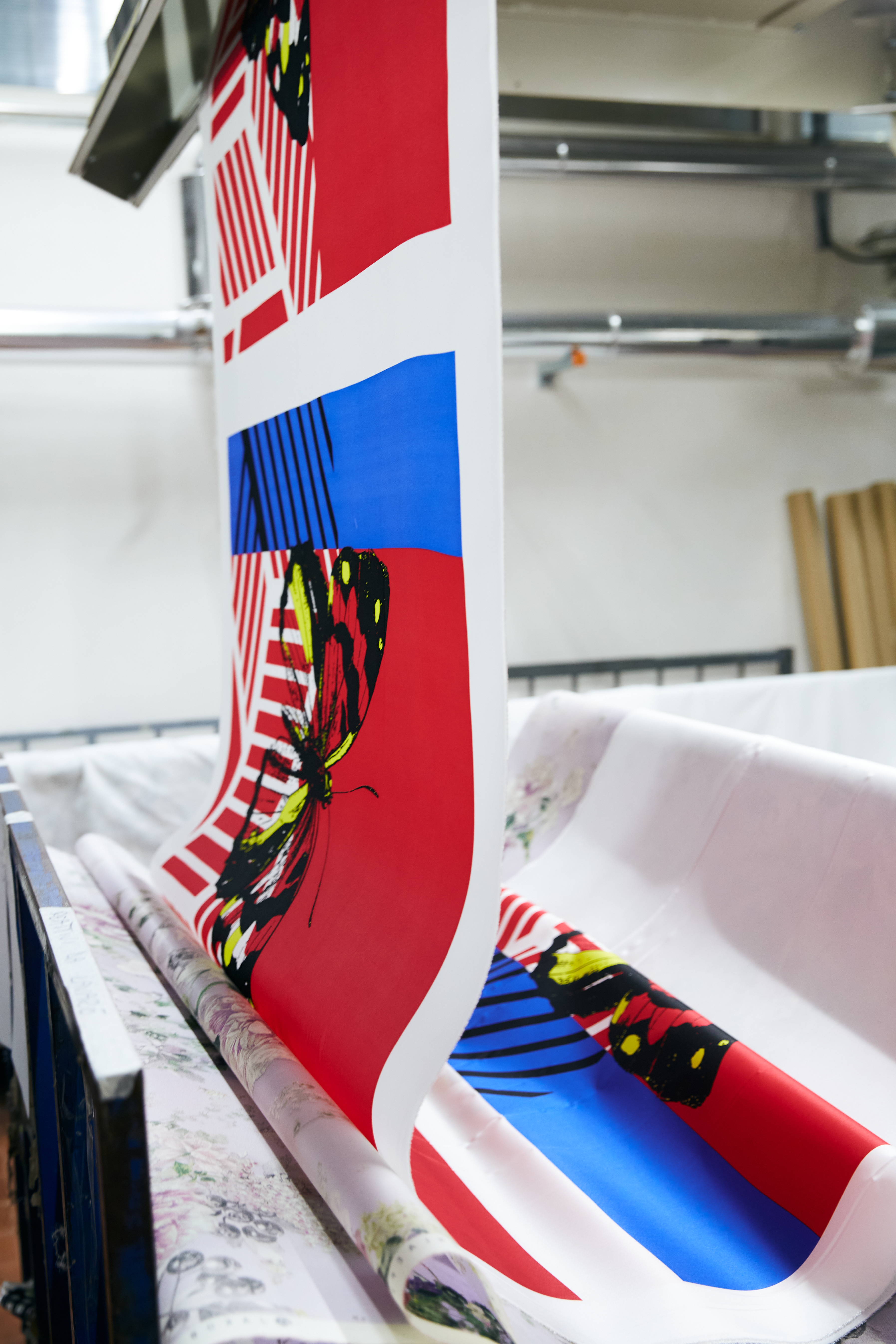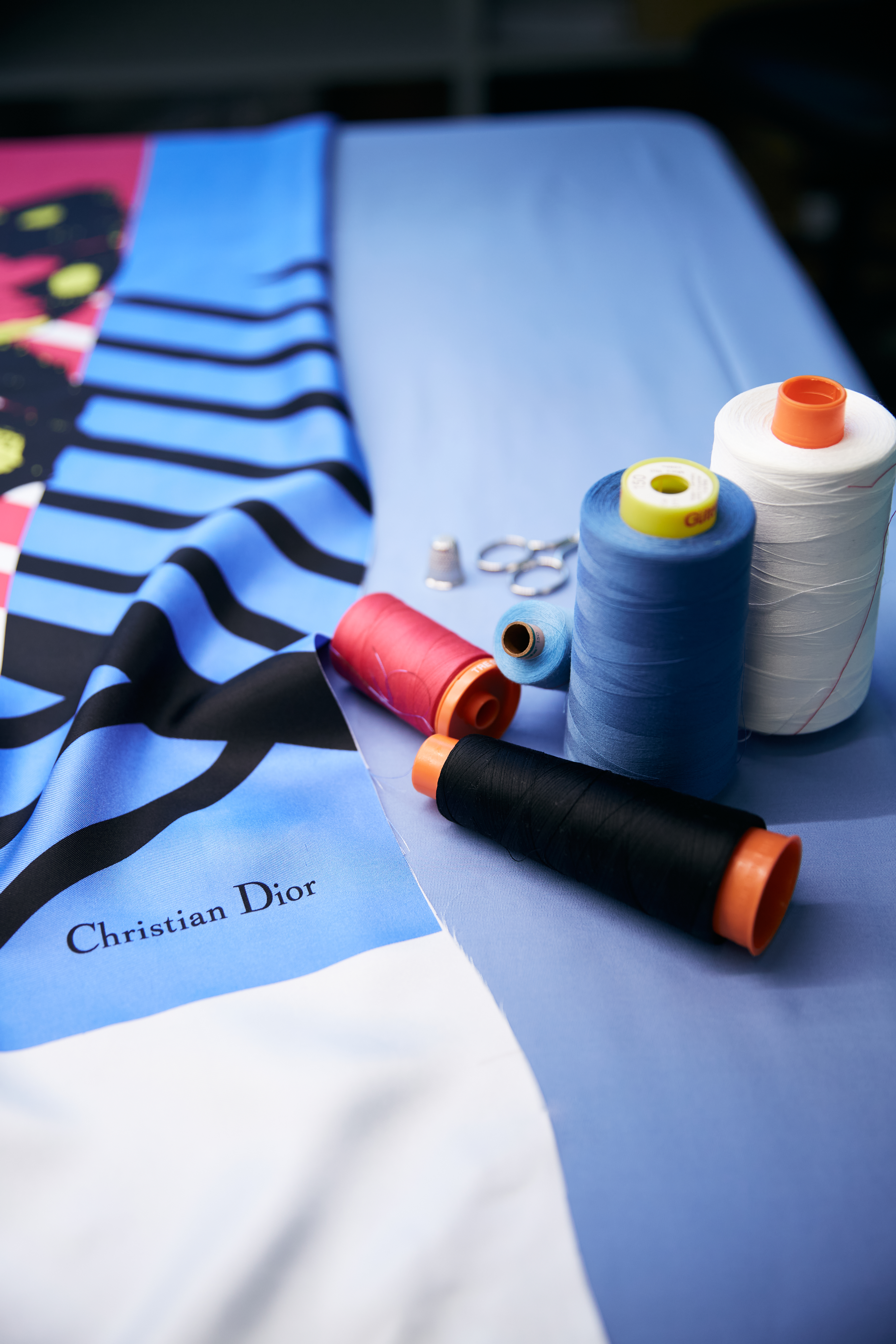 Each colour from sunshine yellows, sky blues and vibrant shades of pink uses a separate screen. For example, a scarf using 28 different colours will be passed through the screen 28 times lending an incredibly precise and detailed layering of paint. A technique not often used. According to Dior, there is just four or five screen print manufacturers in the world where there was once hundreds of them.
