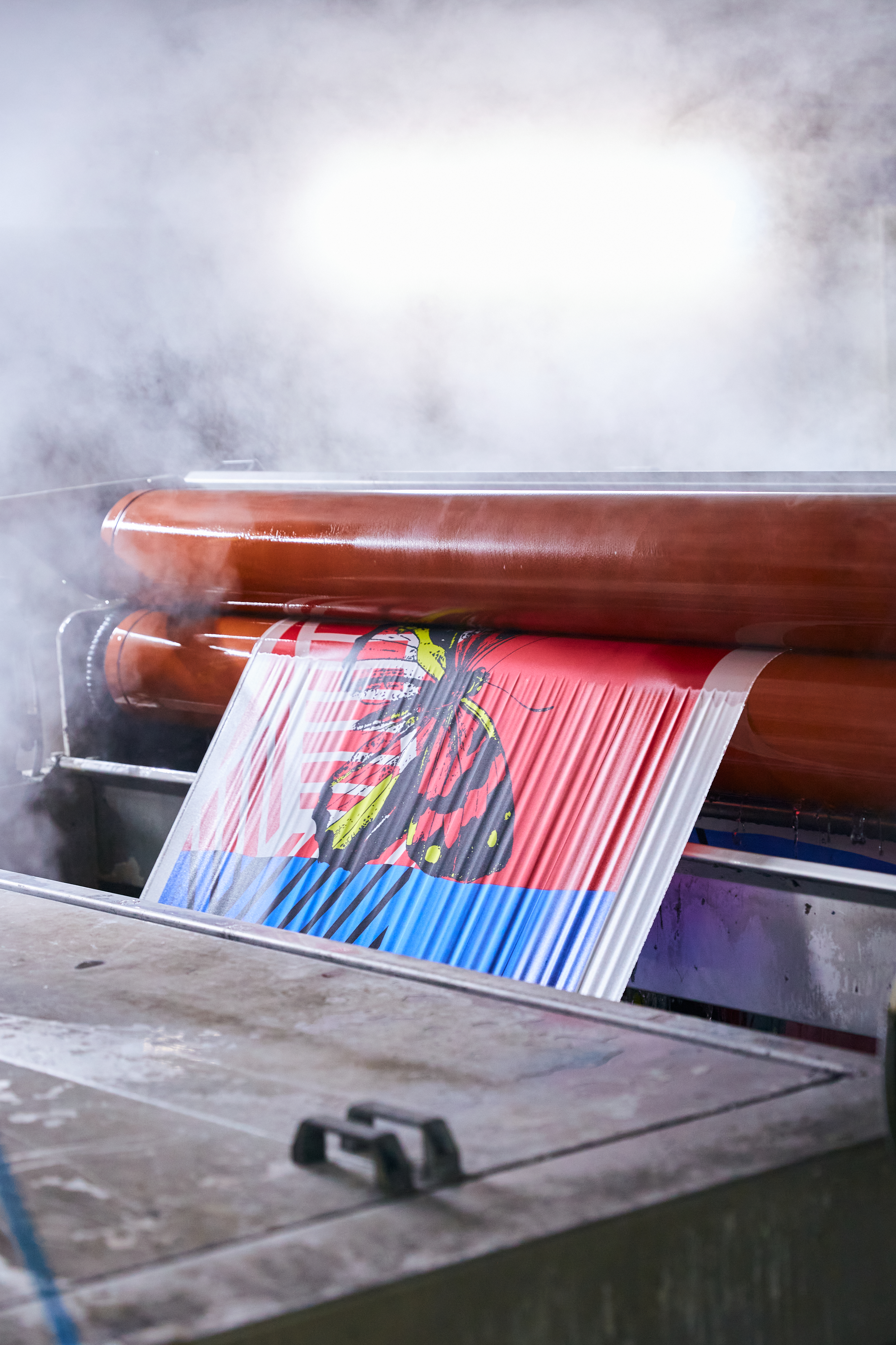 With exquisite motifs designed by artist Pietro Ruffo, the vibrant creations combine animal sketches with graphical elements and are screen-printed onto pieces of silk. The ancient process – and arguably an endangered craft – sees long pieces of fabric fed through a plane frame printing process which we’re told “essentially acts as filters”.