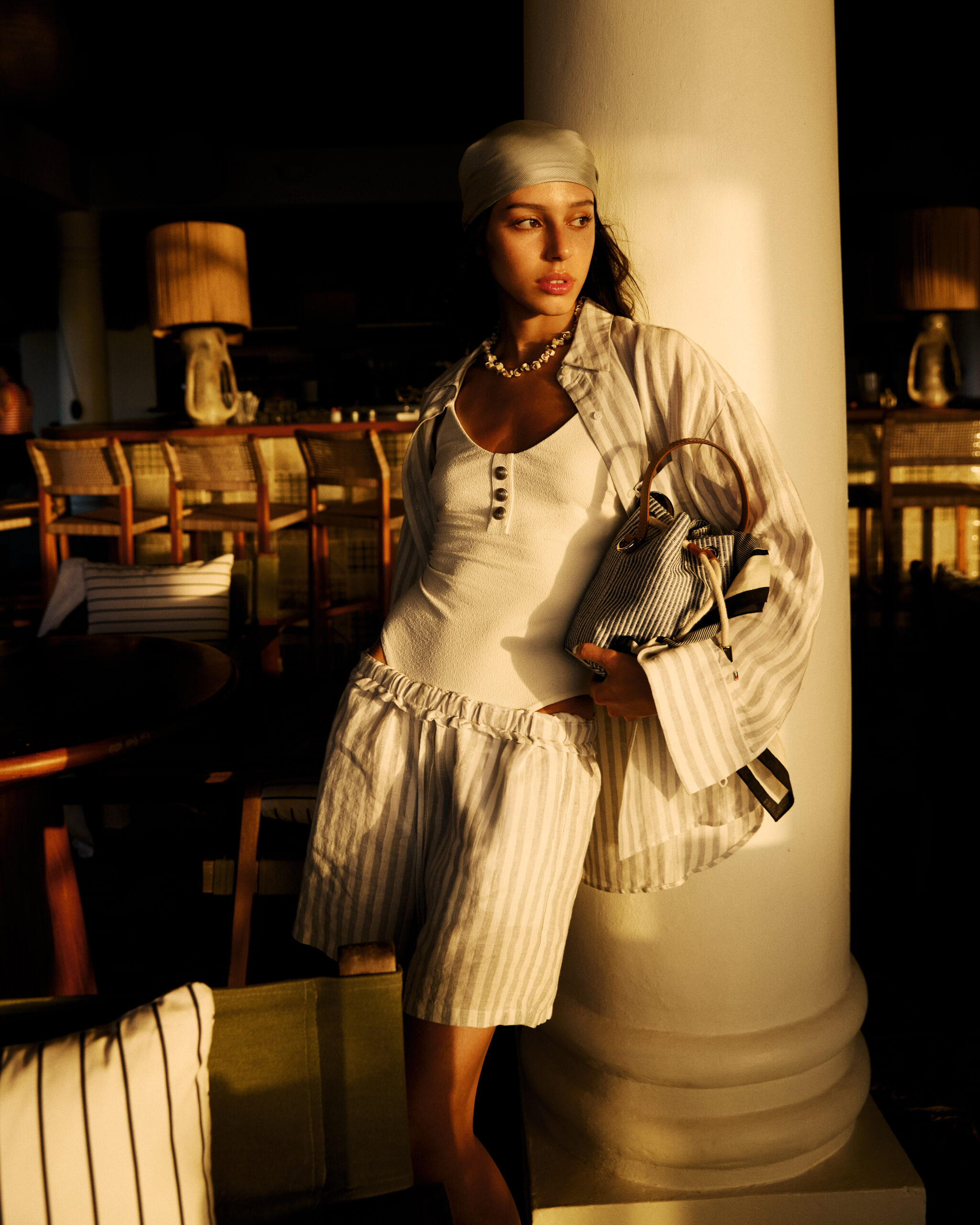 Each day began gently. First with a sunrise swim (jet lag is not a problem when it means having an entire beach to yourself), followed by coffee taken on a terrace overlooking the sparkling waters. Across the sand, hammocks swayed next to volleyball nets and rows upon rows of sun loungers. But the real theatre unfolded in the styling.