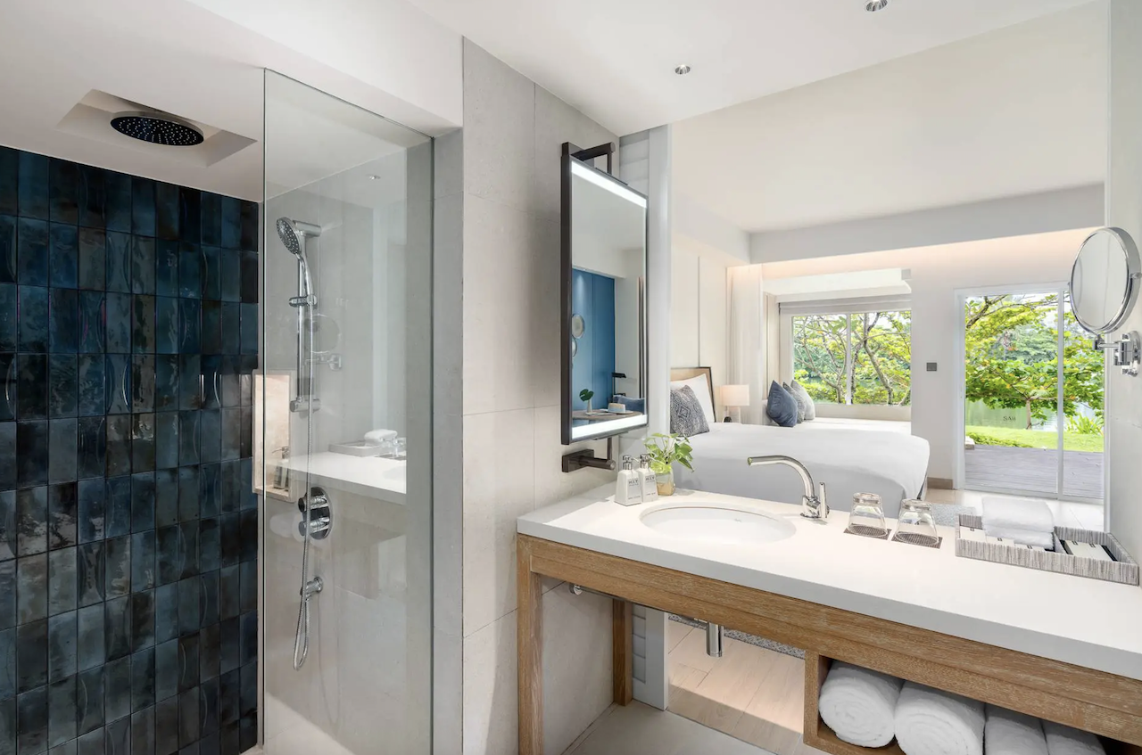 Cada habitación y suite están cuidadosamente diseñadas para brindar un remanso de tranquilidad, con ropa de cama gran lujo, tecnología de punta y baños espaciosos con duchas tipo lluvia y bañeras profundas. Para aquellos que buscan una experiencia aún más exclusiva, el hotel ofrece villas con piscina privada, y servicio de mayordomo exclusivo.