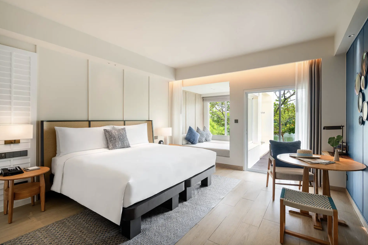 SAii Laguna es un hotel amplio, con muchas habitaciones distribuidas en distintos bloques, pero sorprende lo bien que logra mantener una sensación de calma y cierto cuidado estético en sus espacios. Algunas categorías, como las Beach Access Rooms, permiten salir desde tu terraza directamente a la arena.