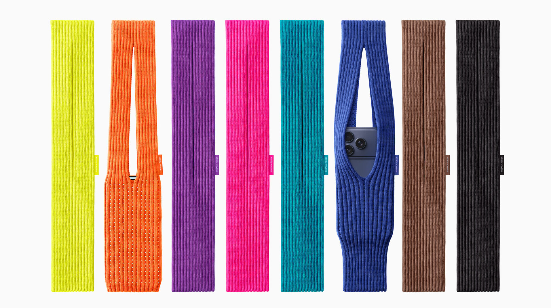 El iPhone Pocket tiene una estructura abierta acanalada con las cualidades de los plisados originales de ISSEY MIYAKE. Nacido a partir de la idea de crear un bolsillo adicional, su delicado diseño cubre al iPhone por completo y se expande para adaptarse a otros artículos cotidianos de los usuarios. Al estirarse, la tela abierta revela el contenido de manera sutil y permite a los usuarios echar un vistazo a la pantalla de su iPhone. El iPhone Pocket puede llevarse de varias maneras: en la mano, acoplado a una bolsa o directamente sobre el cuerpo. Basado en una colorida paleta de colores, el diseño con correa corta viene en ocho colores, mientras que el diseño con correa larga está disponible en tres colores.