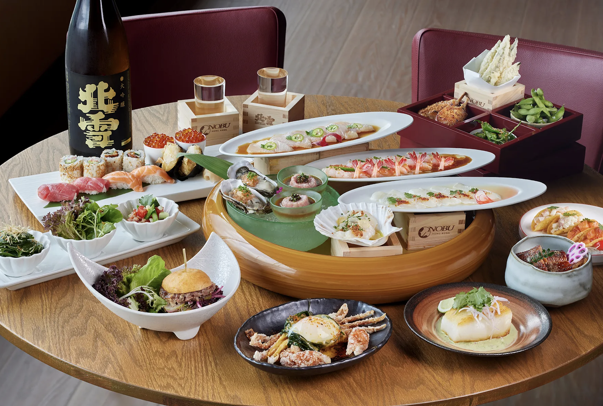 Por la noche, Nobu Hong Kong ofrece otra lectura de la ciudad: luces, skyline, energía nocturna. El restaurante —que solo abre por la noche— sirve los grandes clásicos de la casa, como el Black Cod Miso, sashimis y platos de inspiración japonesa con guiños peruanos, en un entorno donde la ciudad forma parte del espectáculo.