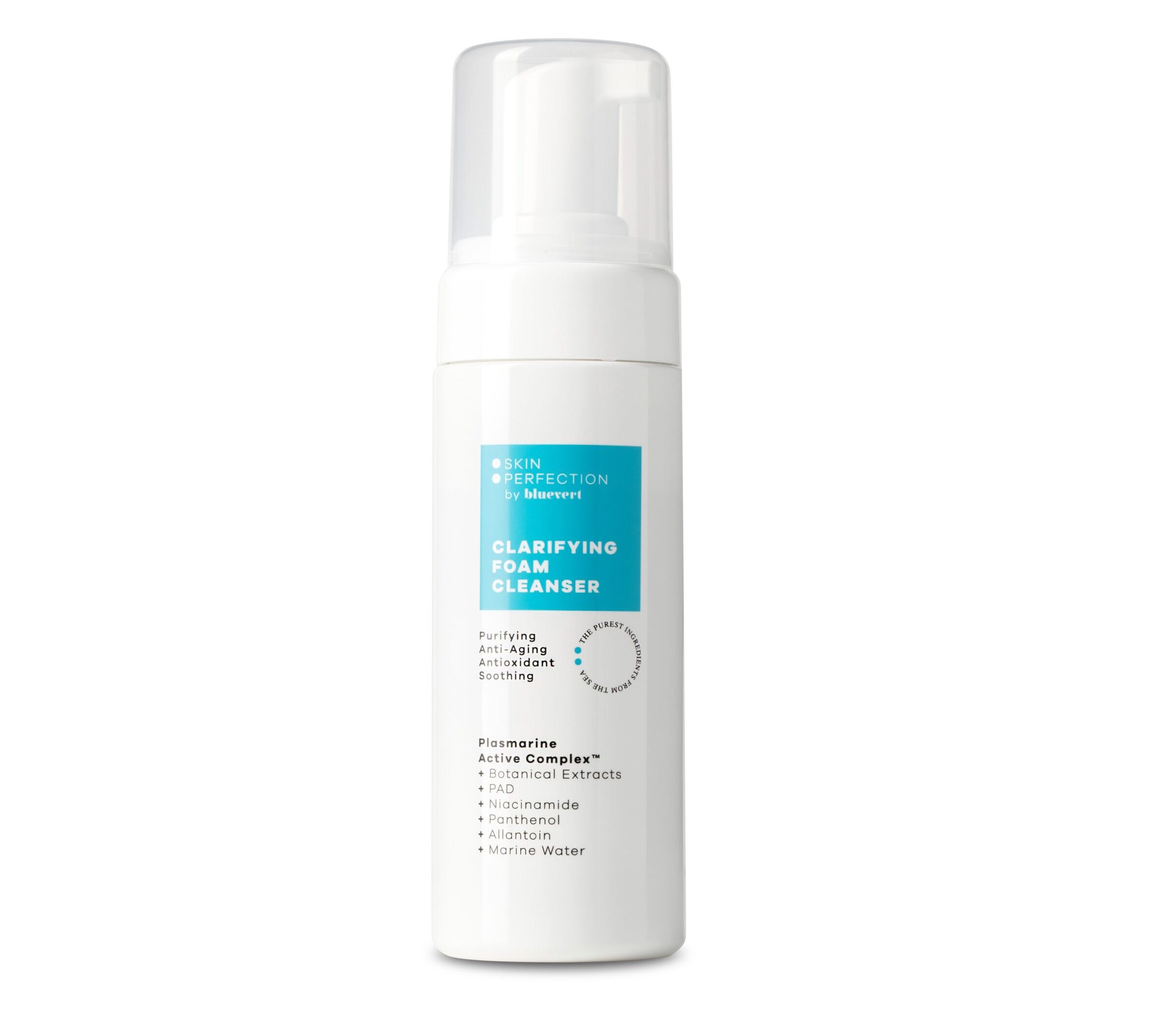 Por eso, Skin Perfection by Bluevert presenta Clarifying Foam Cleanser, apto para todo tipo de pieles gracias a su composición, que incluye tensioactivos suaves, varios emolientes (suavizantes), un complejo seborregulador y el exclusivo activo Plasmarine Active ComplexTM.