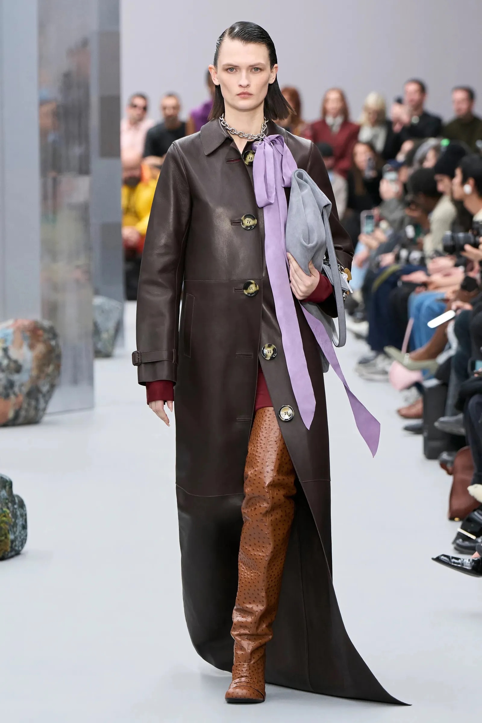 La paleta de colores va desde los clásicos tonos negros y cafés hasta alternativas más claras que funcionan bien con prendas de transición. Este giro responde a la versatilidad que buscamos, con piezas que puedan integrarse a outfits formales y casuales sin requerir grandes ajustes.