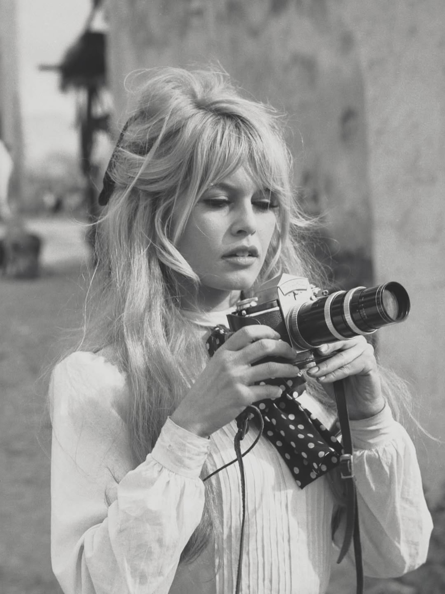 “Solía llevar semirrecogidos half updo, o sea altos, con la mitad del cabello recogido en lo alto de la cabeza, mientras el resto caía libremente, un estilo que fue simbolo de glamour natural y de libertad. Las coletas, con mucho volumen, cardadas, despeinadas, con flequillo abierto y messy, mechones delanteros sueltos, casi siempre coletas altas. Otro de sus looks más populares, revisionado cientos de veces en años posteriores”.