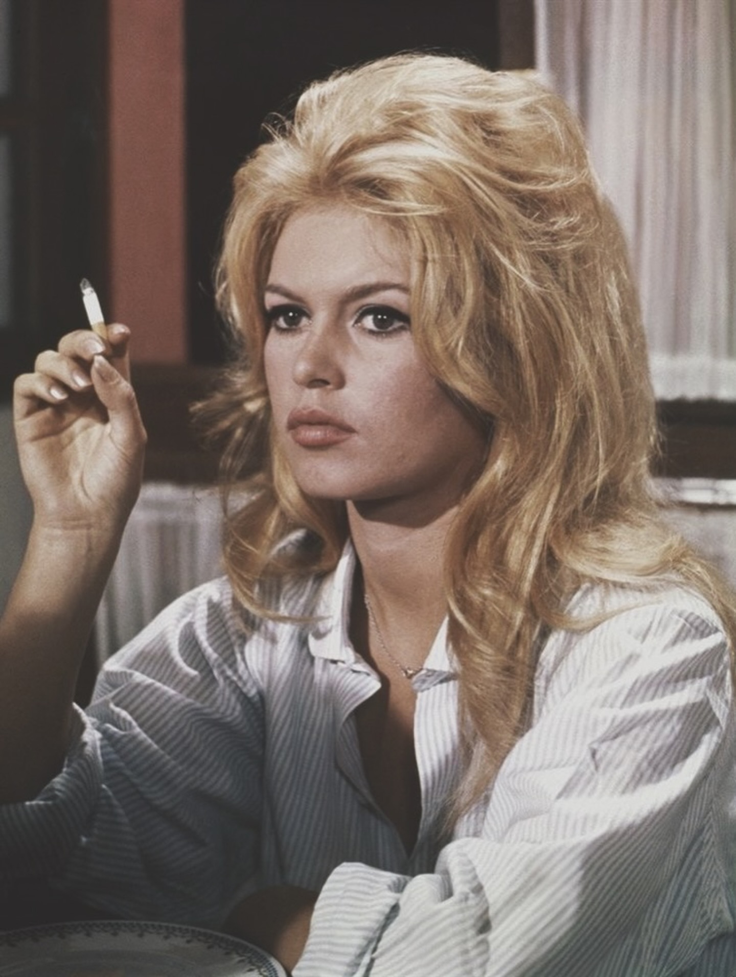 “Bueno, es quizás su imagen más reconocible, larga, despeinada y con mucho volumen, ella misma se cardaba el pelo porque le gustaba ese look salvaje y rebelde que explotó en las películas de Vadim, Gordard y Louis Malle, siempre llevaba la parte superior abultada con ondas suaves, un look asociado con la feminidad y la sensualidad. Por supuesto, luego le añadía los pañuelos, cintas, diademas y sombreros que ayudaron a forjar su imagen de icono de la moda, de hecho ella creó el look Riviera (marinero) en Saint Tropez”.