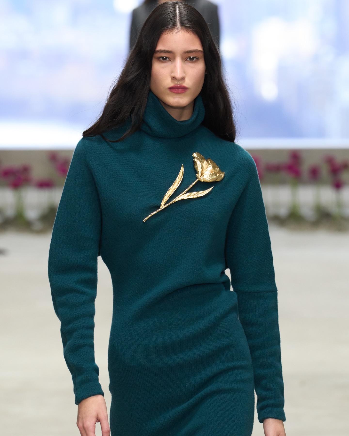 Durante las temporadas de moda recientes, diseñadores como Carolina Herrera y Tory Burch han incluido broches de gran tamaño en sus propuestas, utilizándolos para – literalmente – cerrar con broche de oro atuendos con abrigos, blazers y prendas de punto con volumen. Así, el broche no solo es un complemento secundario, sino un elemento capaz de robarse el protagonismo del outfit completo.
