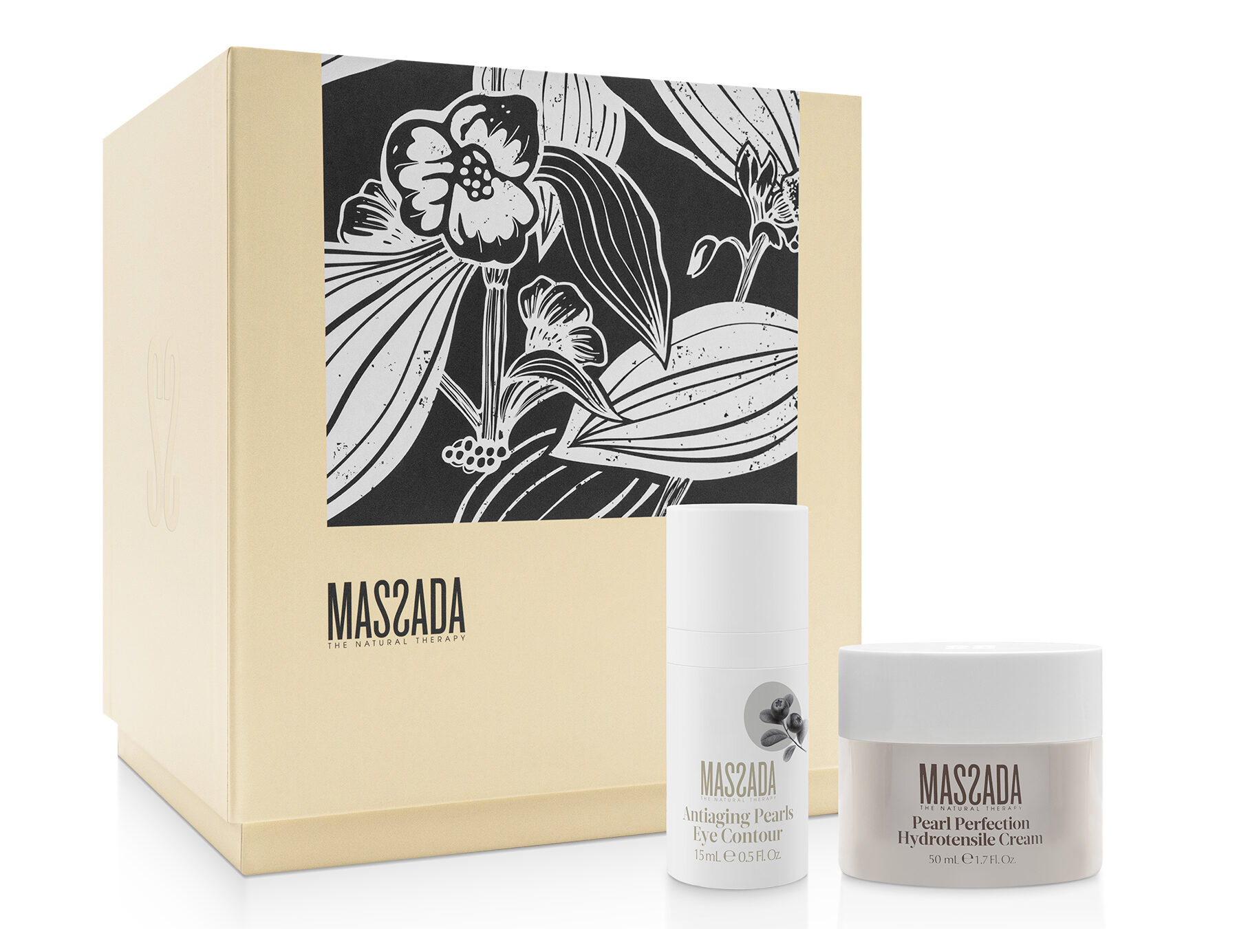 El regalo perfecto para esa persona que necesite hidratar, iluminar y combatir las primeras líneas de expresión. Incluye dos productos (Tratamiento facial Pearl Perfection Hydrotensile Cream (50 ml) y Contorno de ojos antiaging (15 ml)) que envuelven la piel en un halo de luminosidad que se disfruta aún más gracias a su aroma frutal único. El contorno de ojos aporta un acabado descansado y luminoso, además de reducir arrugas, bolsas y ojeras. La crema, por su parte, aporta hidratación, tersura y luminosidad. Sus fórmulas contienes activos naturales como polvo de perlas, arándano silvestre, ginseng, hexapéptidos y oligoelementos.