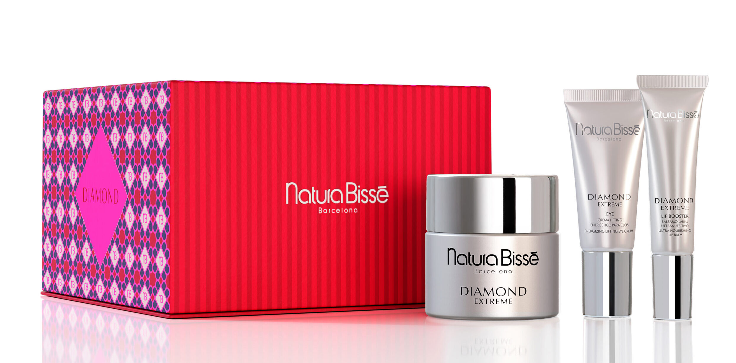 El cóctel pro-longevidad para una piel sin edad de Natura Bisse para estas fiestas incluye la Diamond Extreme Cream — Rich Texture de 50 ml, la expresión más avanzada del rejuvenecimiento global. Esta crema hidratante, con Smart Energy Complex, actúa con precisión: protege la piel durante el día y la repara por la noche, abordando de manera integral todos los signos del envejecimiento. Una textura rica que envuelve y revitaliza. También incluye el Diamond Lip Booster (15 ml), un sérum labial que combina tratamiento y efecto glossy. Su bálsamo sedoso repara, calma y suaviza la superficie de los labios, atenuando pequeñas arrugas y signos de sequedad. Aporta elasticidad y un volumen inmediato, dejando una apariencia más plena y jugosa. El contorno de ojos multifunción Diamond Extreme Eye 815 ml. despierta una mirada luminosa y llena de vitalidad. Hidrata intensamente mientras combate líneas de expresión, bolsas y ojeras, al tiempo que impulsa la firmeza y la elasticidad de la zona. Un gesto esencial para una mirada radiante: