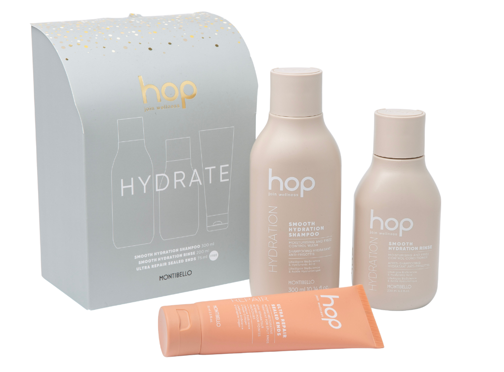 Montibello invita a disfrutar del placer de regalar (y regalarnos) tiempo para uno mismo, con los nuevos packs HOP, tres rituales de belleza capilar que transforman el cuidado del cabello en una auténtica experiencia de bienestar. Nos quedamos con HOP Smooth Hydration: la opción perfecta   para cabellos secos o encrespados. Hidrata en profundidad, controla el frizz y deja una melena flexible, suave y llena de movimiento. Contiene el Shampoo y Rinse (acondicionador), y además incluye de regalo el tratamiento HOP Ultra Repair Sealed Ends, el gesto final que marca la diferencia para un cabello perfecto, reparado y luminoso. Se trata de un tratamiento sin aclarado que sella las puntas abiertas, controla el encrespado y protege del calor, facilitando el secado y mejorando visiblemente el aspecto del cabello desde la primera aplicación. El resultado: una melena más sana, brillante y con acabado profesional, lista para lucirse en las fiestas navideñas (y mucho después).