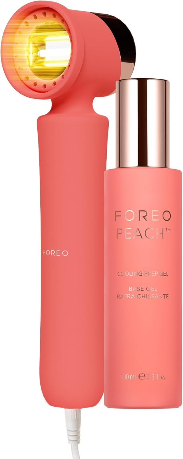 FOREO PEACH 2 Depiladora láser + Gel frío de preparación PEACH para IPL, un dispositivo de depilación permanente con luz pulsada, para hacerlo desde casa, tanto para cuerpo como para rostro que gracias a su sistema de enfriamiento, garantiza una depilación indolora y más cómoda que nunca.
