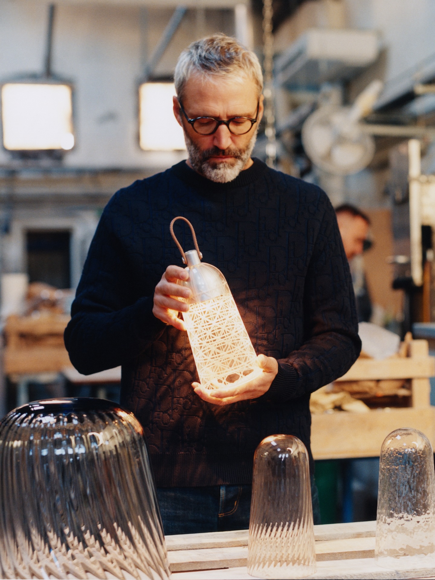 Para Dior Maison, ha concebido luminarias en la confluencia entre la alta costura y el arte de vivir. Estas piezas singulares evocan el espíritu emblemático del New Look de Christian Dior y reinterpretan con frescura y elegancia las líneas características de la falda Corolle.
