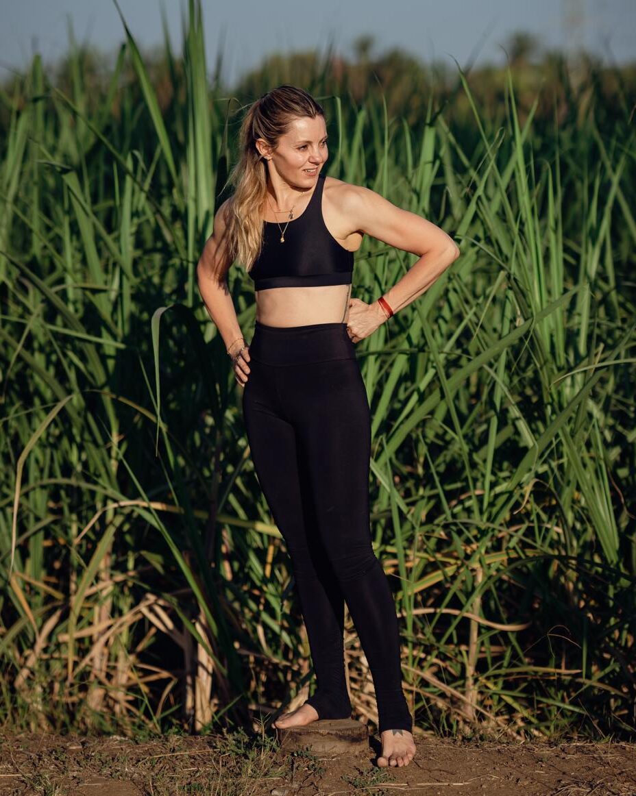 Lo que Victoria buscaba era una prenda más precisa. Después de años practicando a diario, entendía que en disciplinas como el ashtanga cada detalle cuenta: la concentración es frágil y cualquier distracción —una costura mal colocada, una cintura que cede, un tejido que no transpira— interrumpe el trabajo interno. “No encontraba un equilibrio”, repite. Y esa palabra resume el punto de partida de Deva.