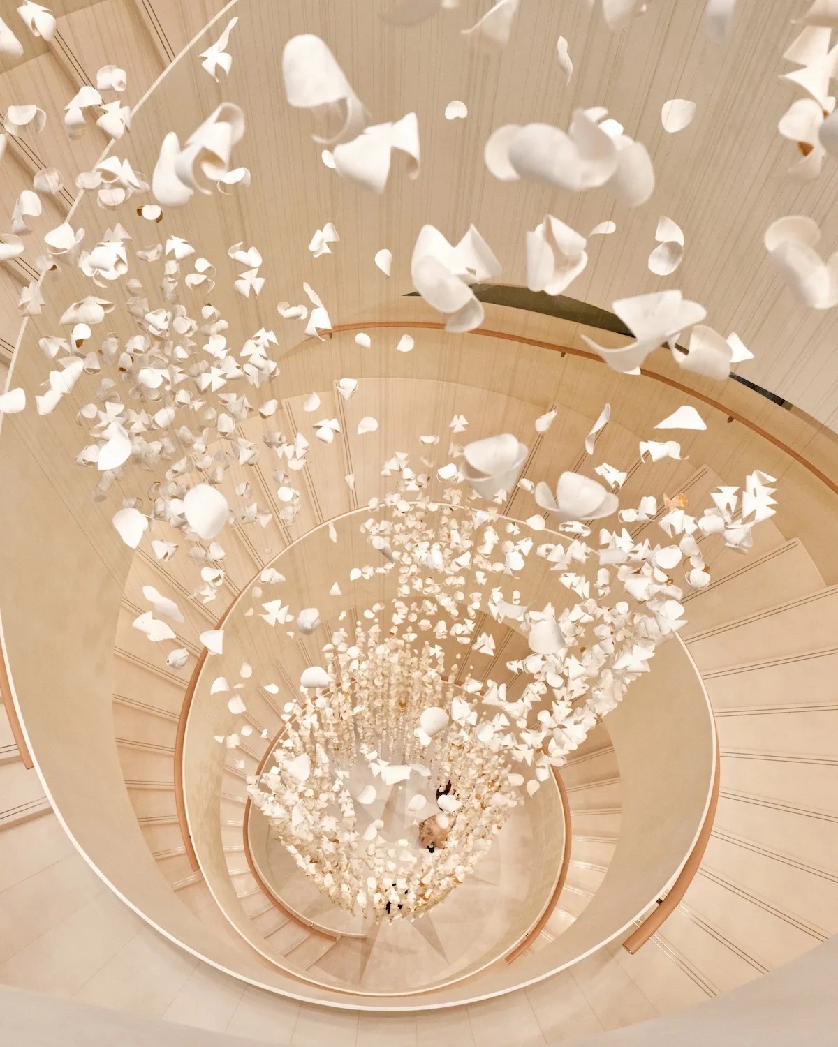 Firmada por Christian de Portzamparc, ganador del Premio Pritzker, House of Dior Beijing es una escultura que habita la ciudad. La fachada, compuesta por paneles con forma de pétalo que evocan los tejidos fluidos de los vestidos de Dior, fusiona arquitectura y moda de forma inusual y brillante. Estos “pétalos” están intercalados con ladrillos de vidrio dorado hechos a mano, un guiño elegante a la tradición imperial china donde el dorado era símbolo de dignidad y realeza.