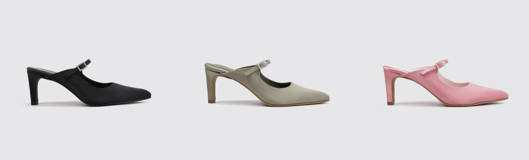 Mules con lazo, mules tipo stiletto en satén o sandalias minimal en piel. Todos con tacón cómodo, colores súper combinables y ese algo especial que marca la diferencia. Disponibles exclusivamente en tiendas físicas y en la web de Krack por 59,95 € cada uno.