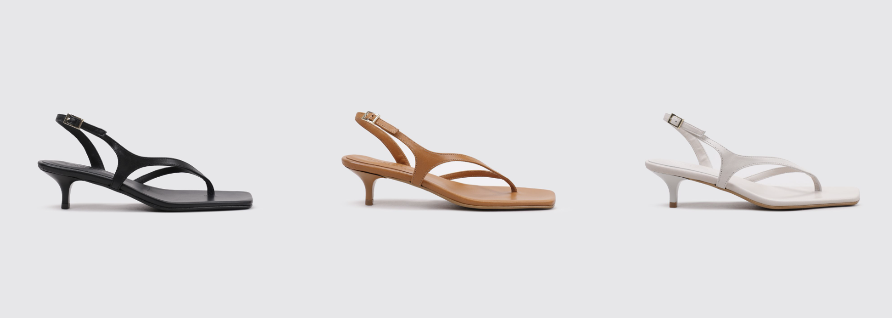 Sandy es el modelo más versátil. Una sandalia hecha en piel, con punta cuadrada, tacón de 5 cm y tira al dedo. Minimalista, bonita y cómoda, es el par que te acompaña en todo tipo de planes: de la oficina al afterwork o de una comida frente al mar a un festival al aire libre.