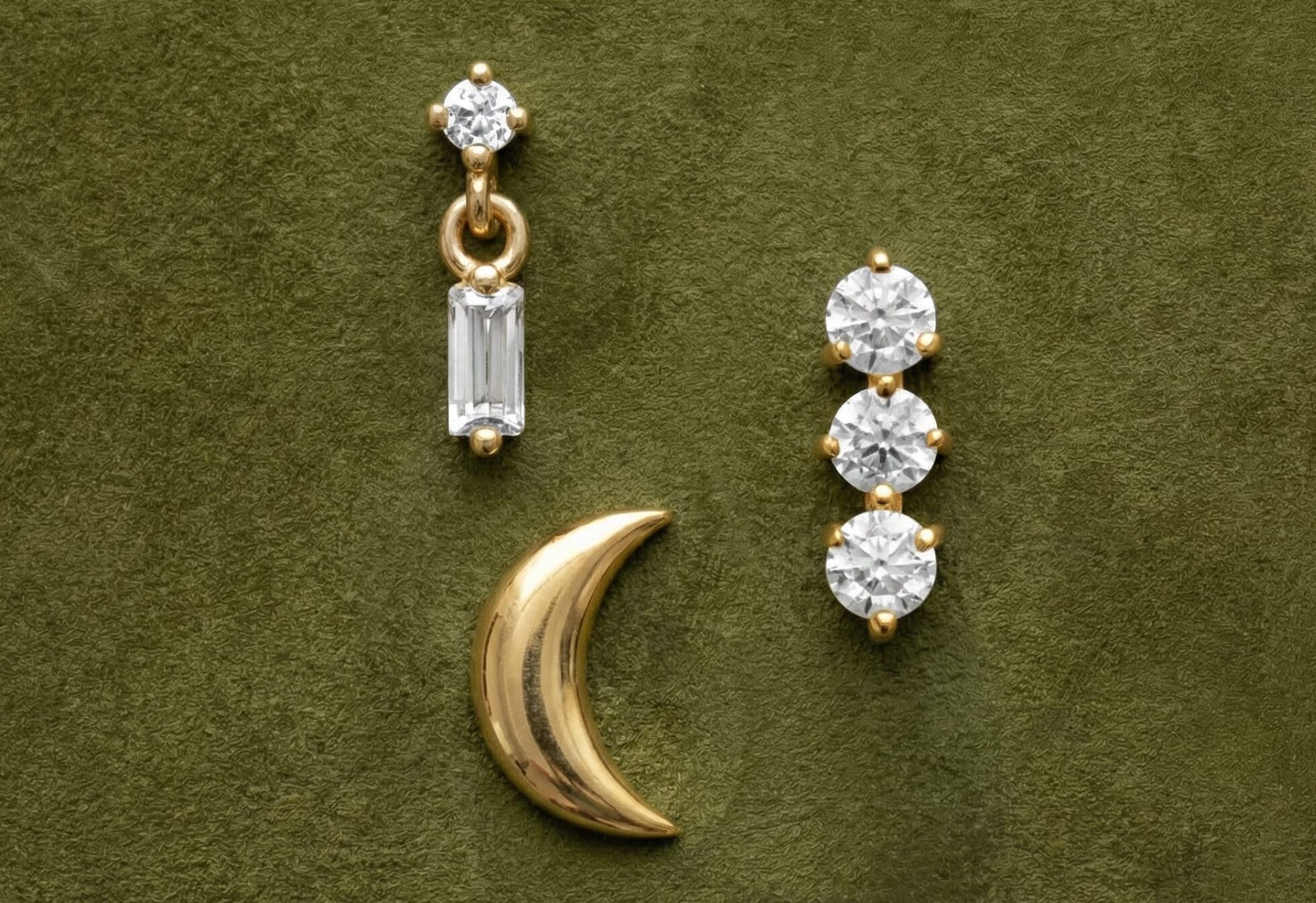 La colección de piercings de Sure Jewels reúne diseños pensados para combinar entre sí. Desde formas inspiradas en elementos como lunas, estrellas o pequeños destellos, hasta piezas con circonitas que aportan un punto de luz más marcado, todos comparten una misma línea delicada y fácil de llevar. Se suman también aritos más sencillos, ideales como base para cualquier combinación, junto a otros modelos con pequeños colgantes que añaden movimiento y un toque más especial.