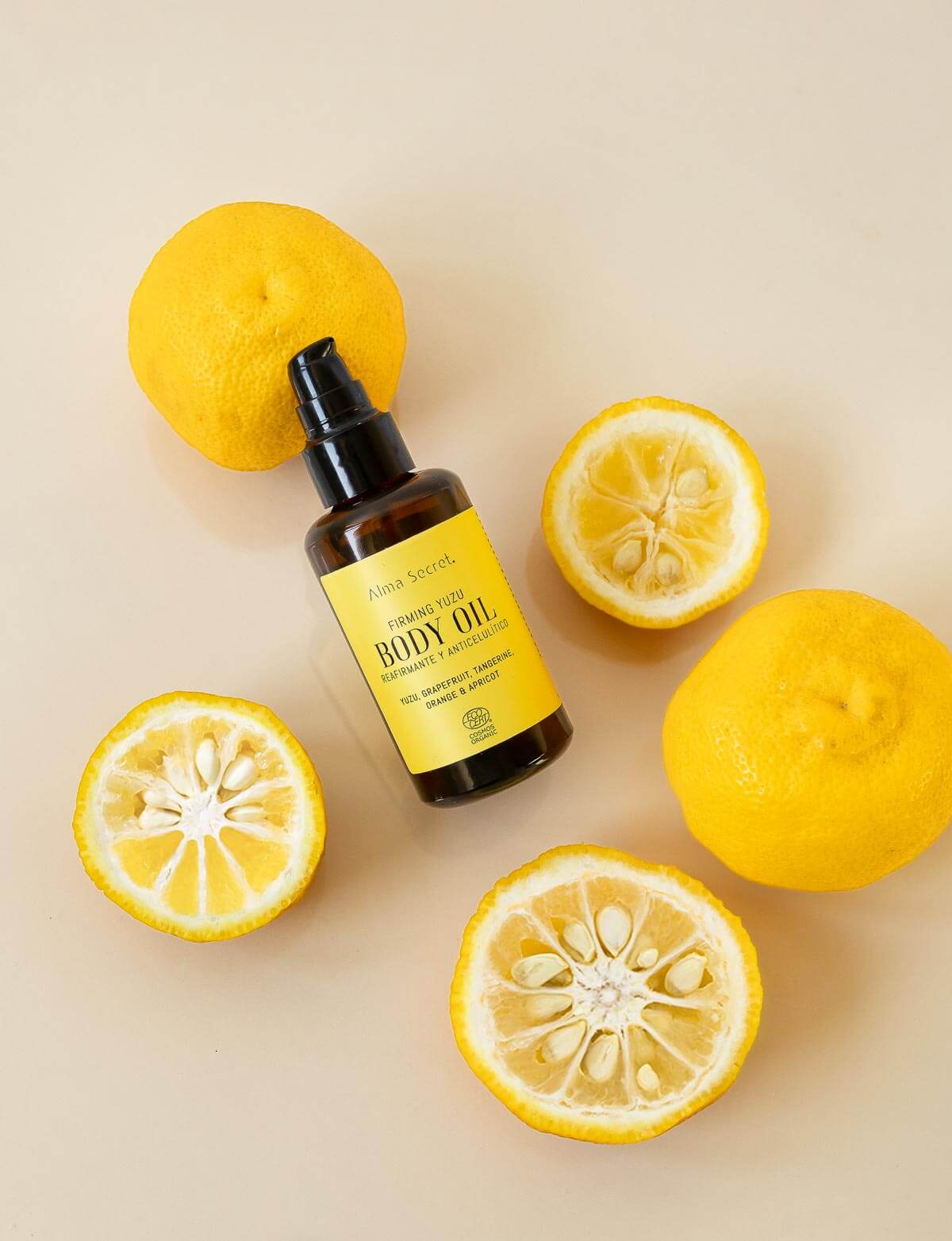 El Yuzu es un cítrico originario de Asia Oriental, conocido por sus propiedades antioxidantes y su altísimo contenido en vitaminas A y C. Es el protagonista de Firming Yuzu Body Oil, una fórmula que incluye otros 17 aceites naturales y orgánicos, además de Plankton Extract procedente de las microalgas marinas Tisochrysis Lutea, un innovador complejo vegetal que estimula el paso de adipocitos acumuladores de grasas a adipocitos que queman grasas.