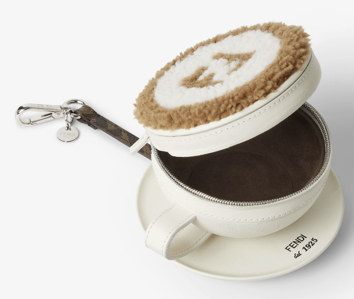 Para los amantes del café el Charm Fendi Capuccino le da un toque espumoso y casi realista, con su piel de cordero y el logotipo Fendi inscrito en la espuma a modo de barista.