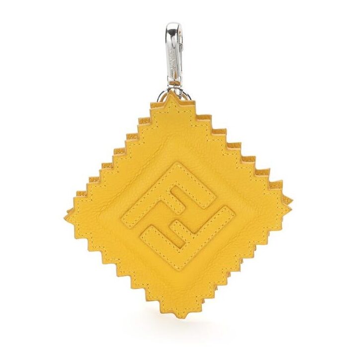 Por otro lado también está el Charm Fendi Raviolio también en piel granulada con su inconfundible amarillo y la FF central es el que lleva la esencia italiana.