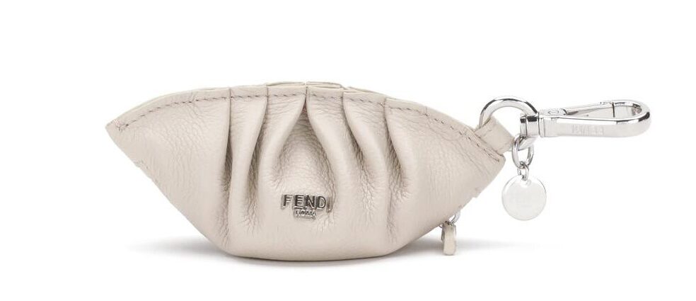 Y si todavía te has quedado con hambre, los charms de Fendi Foodppueden o bien complementar el bolso o añadir esos toques un poco más sutiles de sátira al día a día. La versión reducida del Fendi Food Dumpling  está forrada en piel granulada beige claro y la inscripción Fendi Roma sobre la que se esconde un pequeño compartimento.