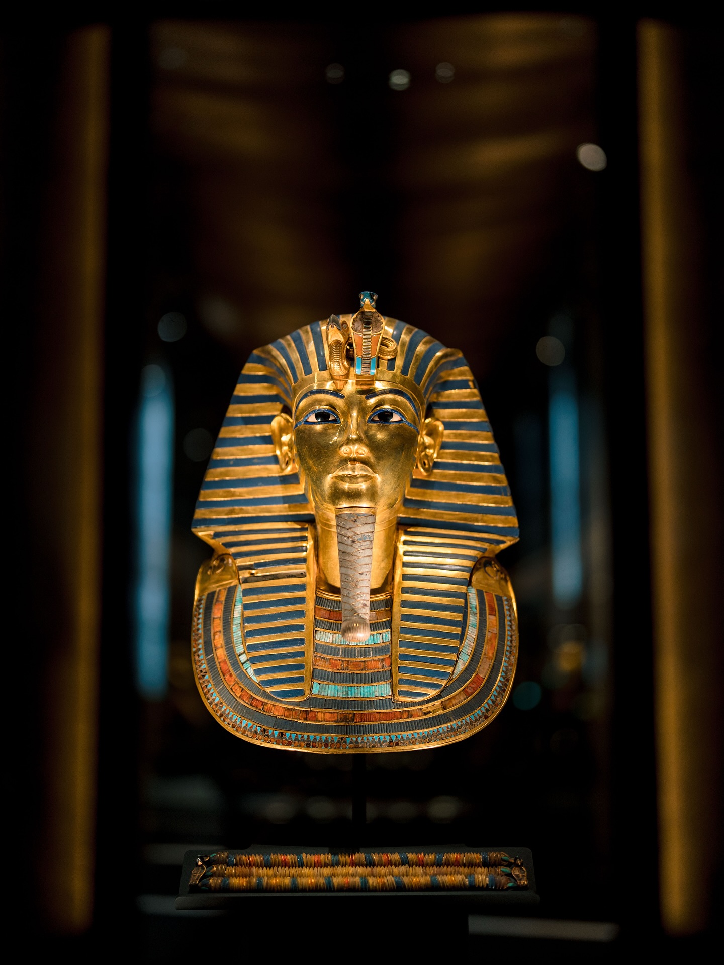 Por primera vez se exhiben juntas todas las piezas encontradas en su tumba: joyas, tronos, amuletos, instrumentos y, por supuesto, su máscara funeraria. Es el corazón simbólico del museo.