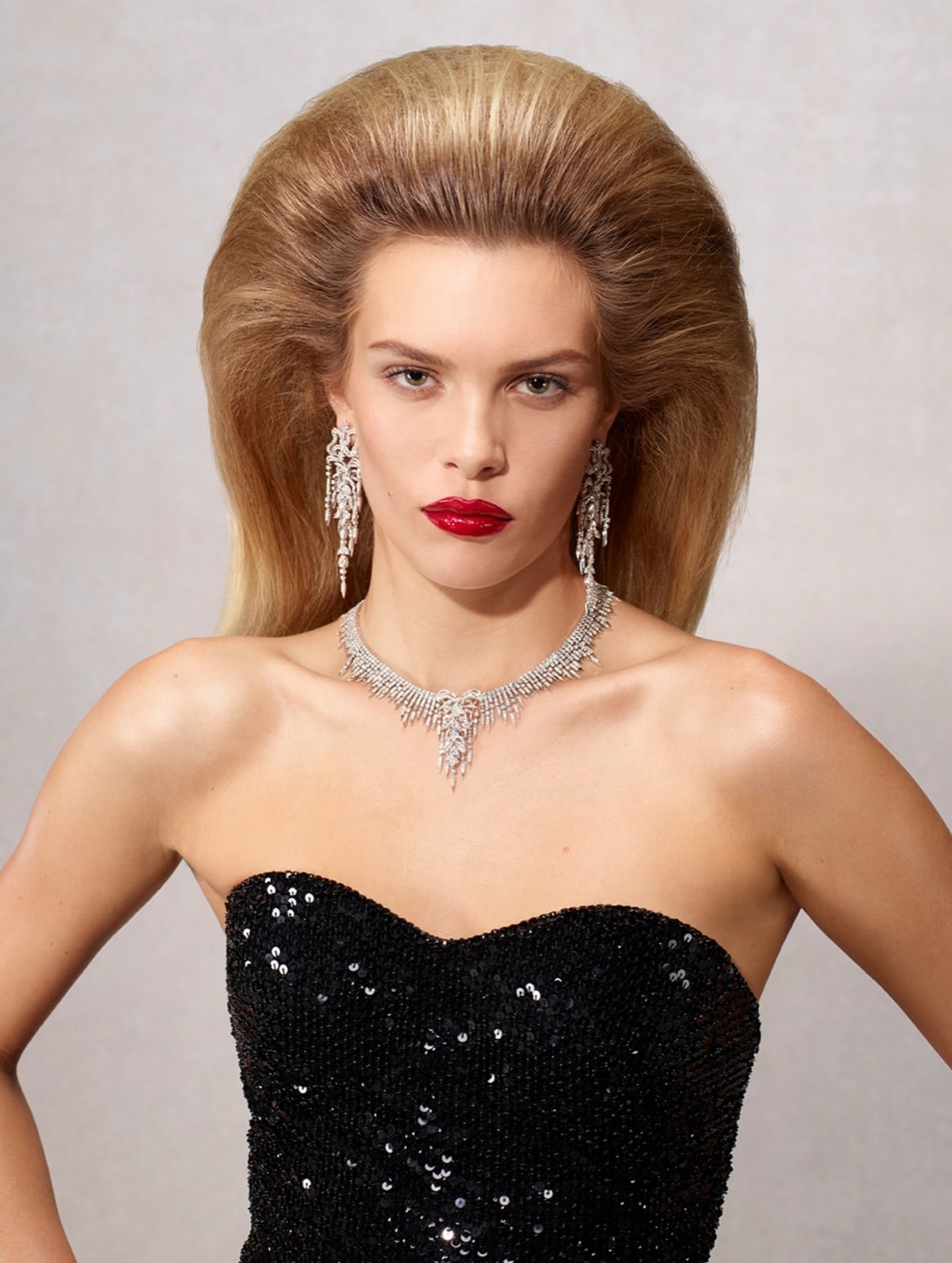 El arte italiano de la elegancia sin esfuerzo, la Sprezzatura, se refleja en gestos de naturalidad como los mules de piel suave llevados pisados. Vestirse por placer se traslada también a la moda masculina, visible en el traje sastre de Direttore y en el look de Principino, definido por su atracción natural hacia el centro de atención. Cada personaje y su vestuario revelan una de las múltiples personalidades de La Famiglia y las actitudes estéticas distintivas que definen la colección.