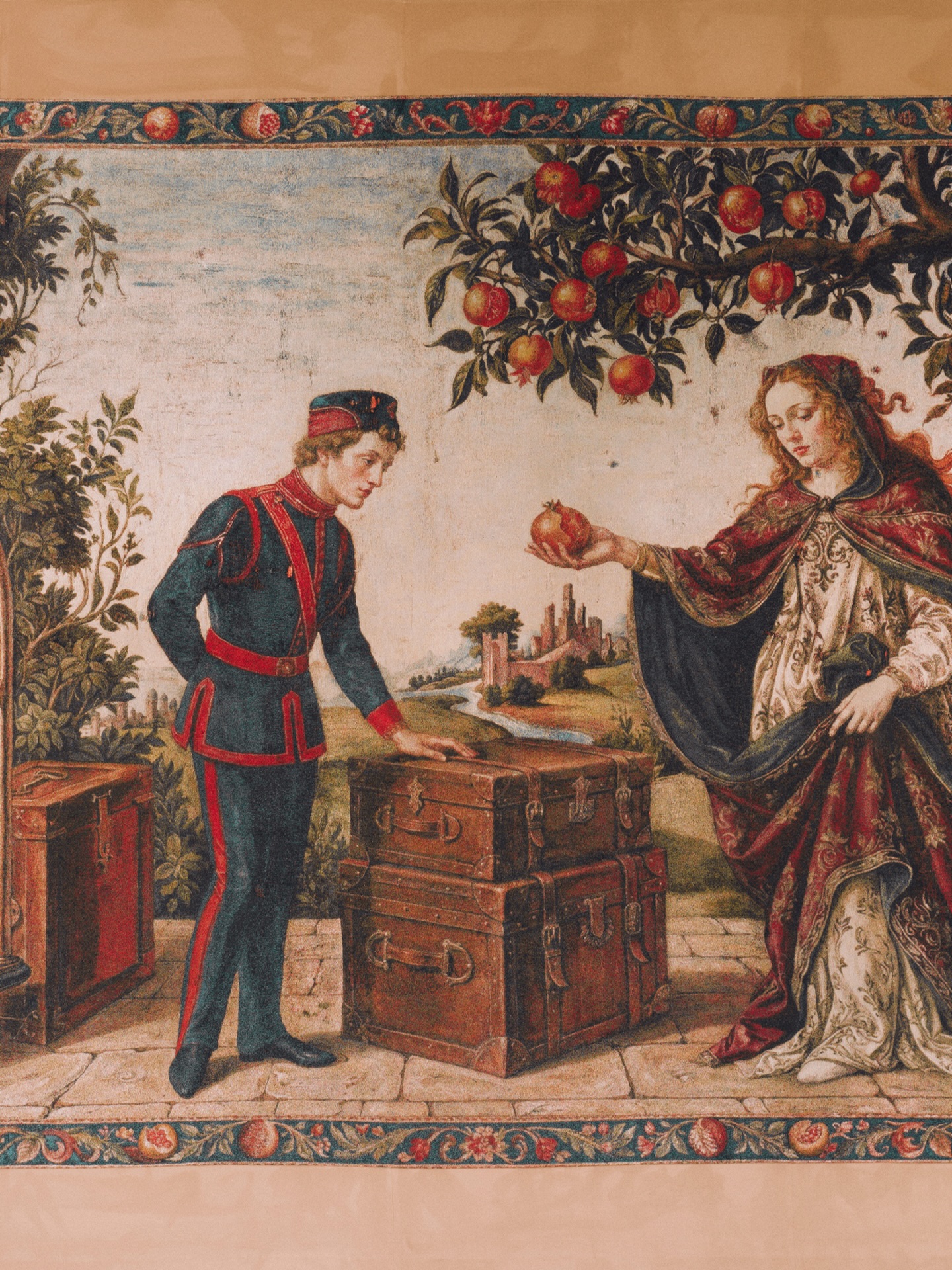 En el núcleo de Gucci Memoria se encuentra un ciclo de doce tapices concebidos como una crónica visual de la Casa. Arraigado en una artesanía históricamente vinculada a Florencia, cada pieza traduce un momento definitorio en la historia de Gucci en un tableau ricamente compuesto. Comenzando con los años formativos de GucciGucci en Londres en el The Savoy Hotel, la serie recorre la fundación del primer taller florentino, la codificación de la identidad visual de la Casa y su expansión como símbolo internacional del lujo.