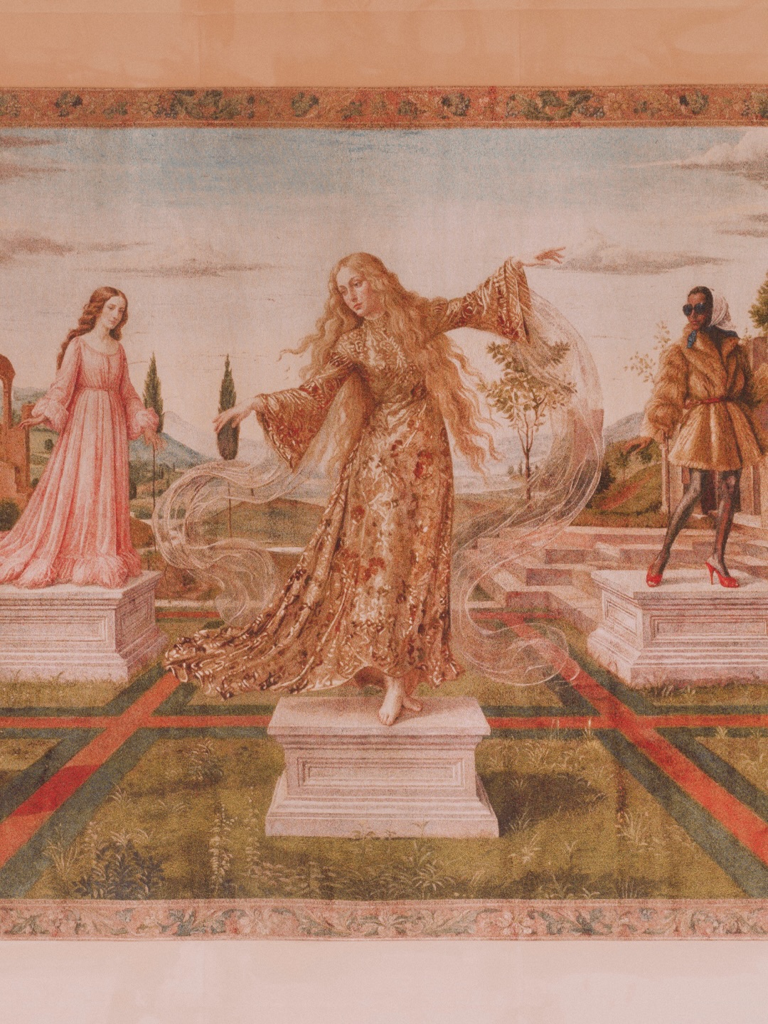 Cada tapiz se articula mediante variaciones de composición, color y atmósfera, pasando de orígenes mitificados a reinterpretaciones contemporáneas. Figuras, símbolos y paisajes evolucionan a lo largo de la secuencia, construyendo un lenguaje visual que refleja la transformación continua de Gucci.