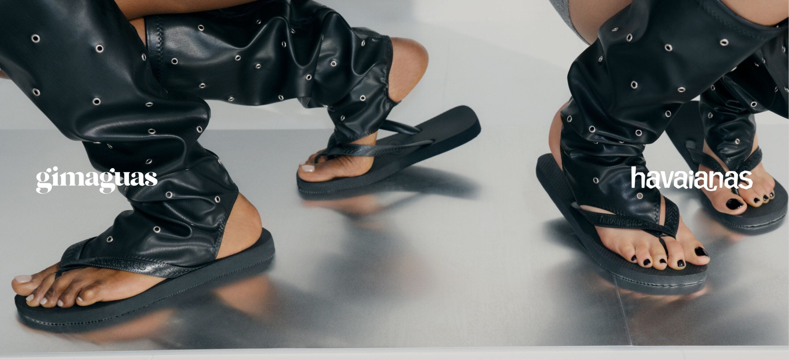 La Top negra se presenta junto a los calentadores de piel artesanales de Gimaguas, aportando un giro sofisticado al diseño. Terminadas con ojales plateados —seña de identidad de la marca barcelonesa—, las piezas se colocan con facilidad y se ajustan alrededor del pie y los dedos. A través del juego de texturas, contrastes y volúmenes, el diseño transforma la silueta icónica de Havaianas en una pieza atemporal, pensada para llevarse durante todo el año y reinterpretar el espíritu del verano en nuevos escenarios.