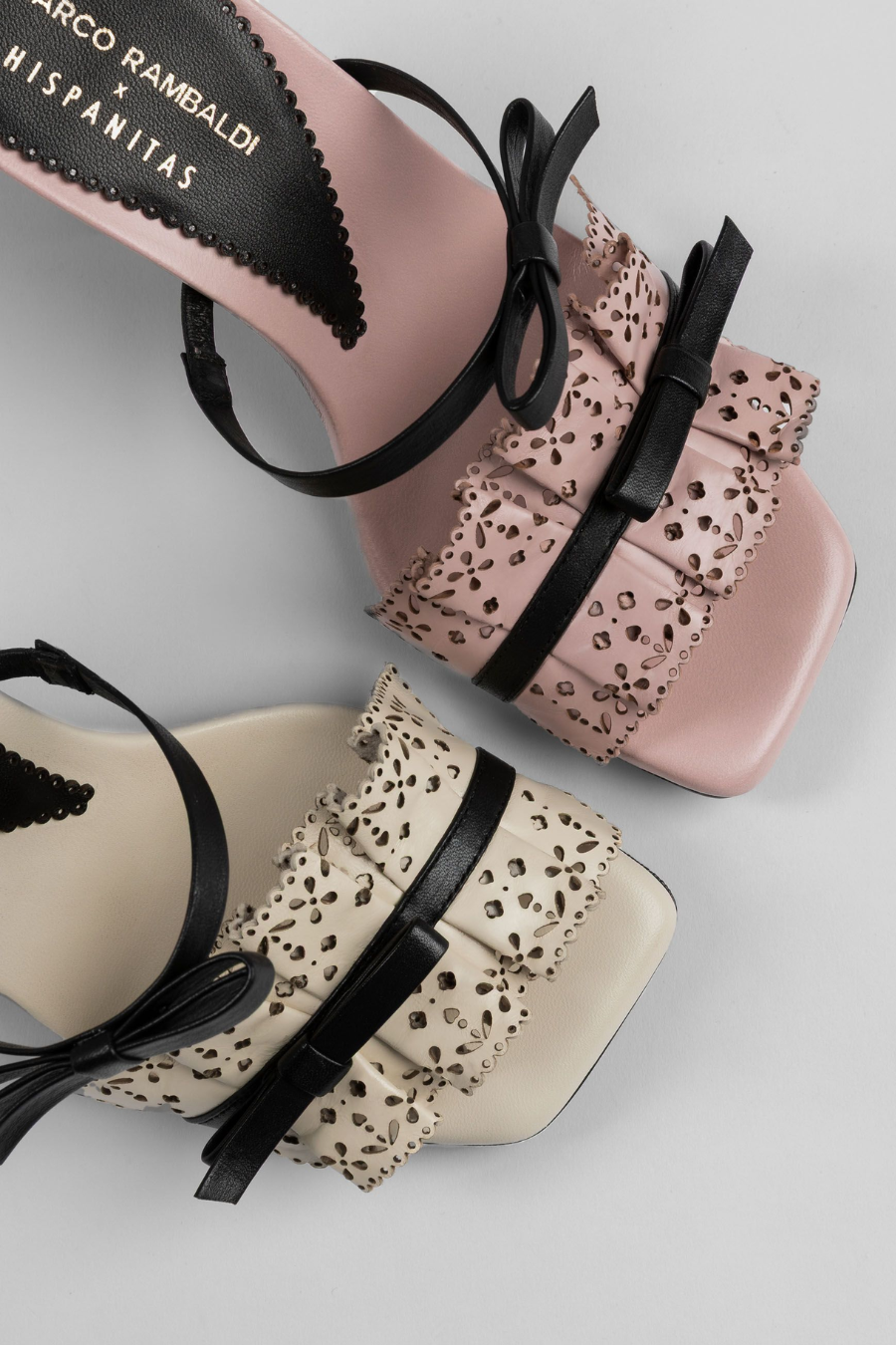 La memoria y la emoción atraviesan también todo el proceso creativo. El diseñador reconoce una inspiración profundamente personal: “Una gran inspiración viene de mi infancia. En casa de mi abuela veía divas italianas en la televisión, como Ornella Vanoni, y a menudo veía este tipo de sandalia sobre el escenario”. Aquellos tejidos de crochet y tapetes de ganchillo con los que trabajaba su nonna se reinterpretan hoy en piel en Ornella de una manera casi hereditaria, ya que se trata de elementos también recurrentes en el trabajo del diseñador desde sus inicios.