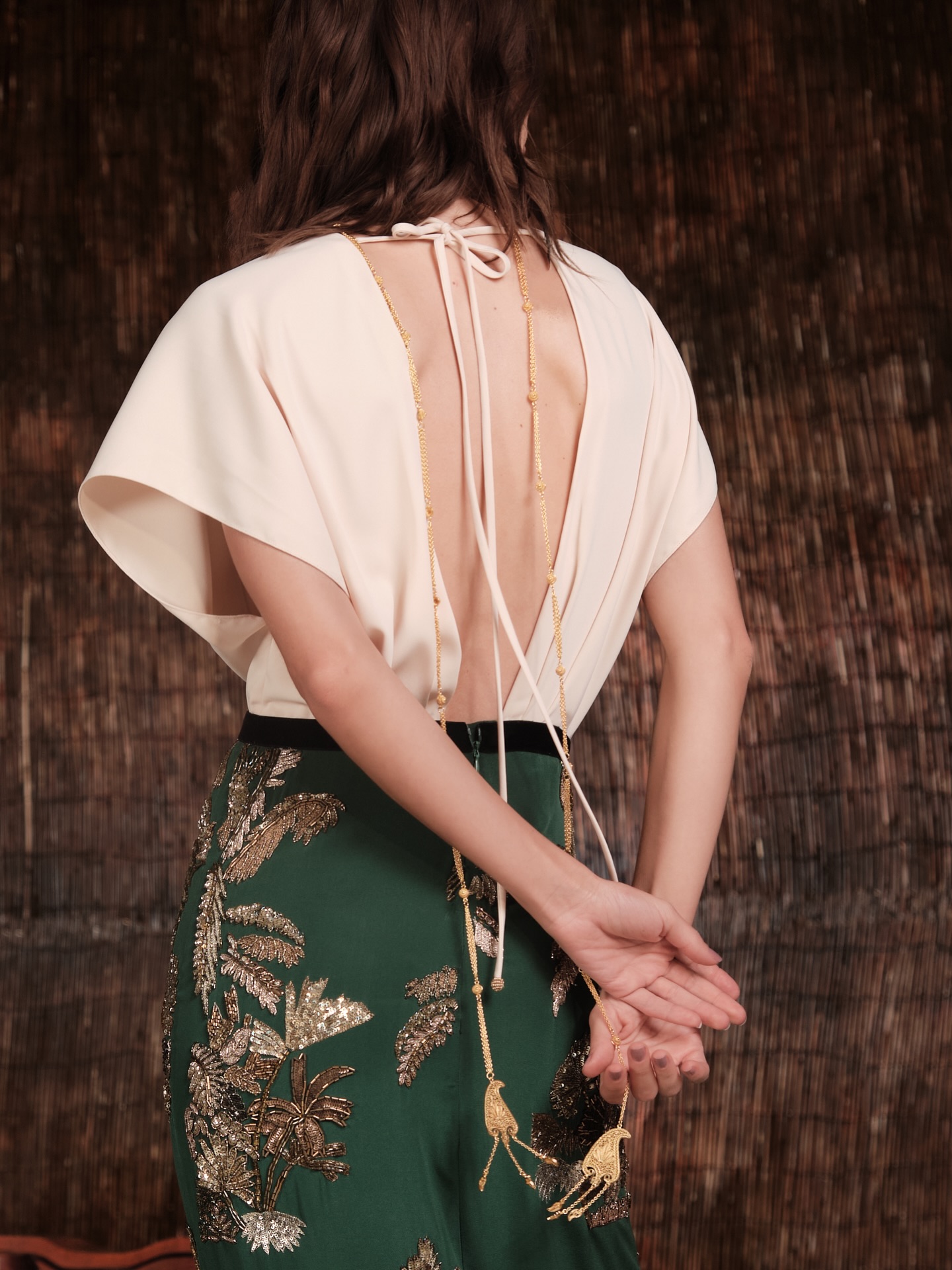 Desde Colombia al mundo, Johanna Ortiz ha construido un universo creativo profundamente ligado a sus raíces. Su marca es un homenaje a la artesanía hispanoamericana, al trabajo manual transmitido de generación en generación y a una feminidad poderosa que dialoga con la naturaleza, la sensualidad y la identidad cultural. Cada colección refleja un equilibrio delicado entre tradición y contemporaneidad, donde los volúmenes escultóricos, los estampados orgánicos y la atención al detalle se convierten en un lenguaje propio, reconocible y atemporal.