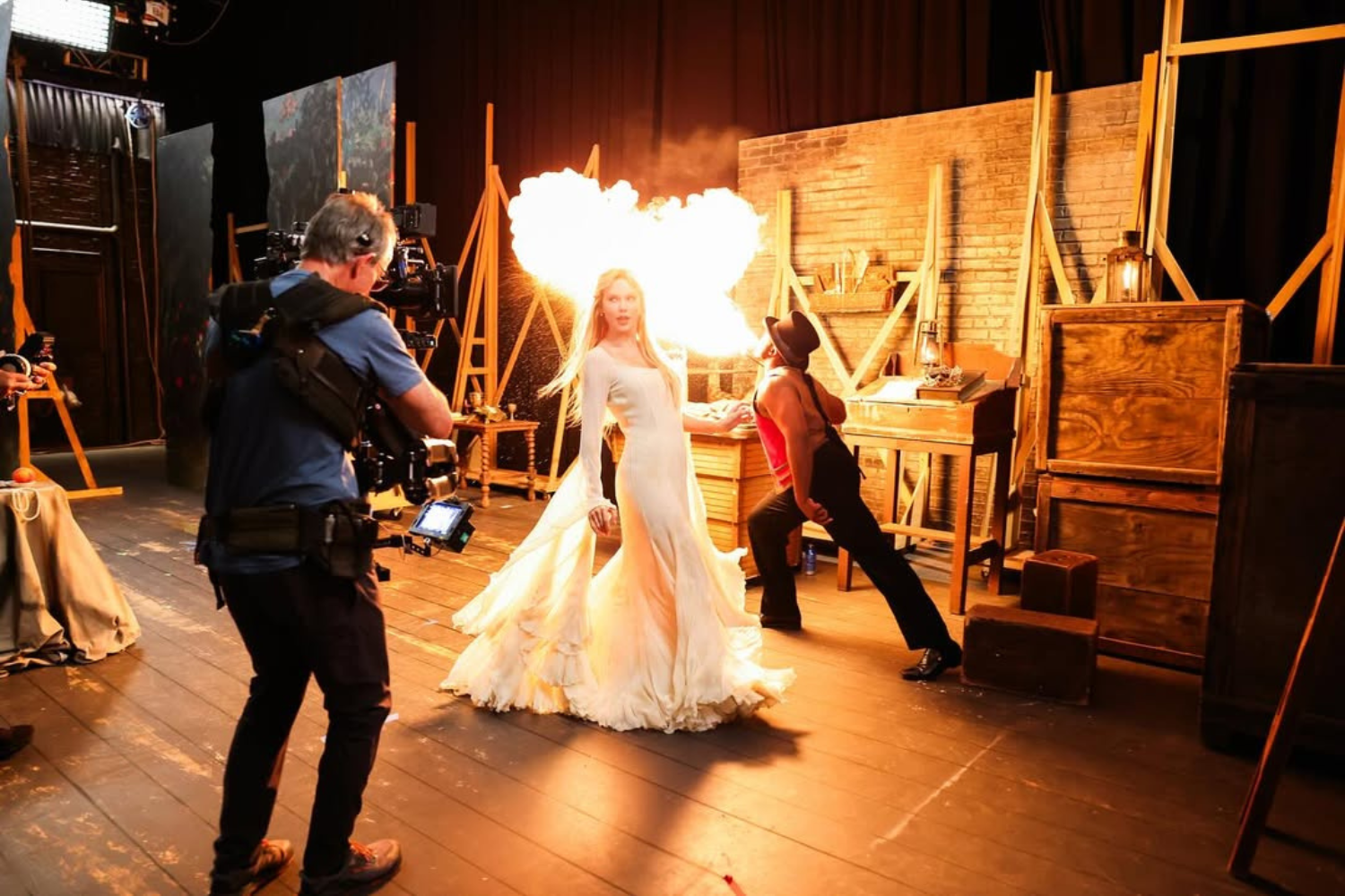 Al comienzo del videoclip, la artista aparece literalmente sacada de un museo, enfundada en un vestido blanco diseñado a medida por Lorenzo Serafini para Alberta Ferretti. Con mangas románticas que rozan el suelo y un bajo de volantes escalonados, el look es una oda a la pintura prerrafaelita, con ecos del romanticismo inglés y la sensibilidad pictórica del pintor británico John Everett Millais. Un momento shakesperiano, acompañado de un look a la altura, que reafirma su poder para transformar cada aparición en una pieza obra de arte convertida en una realidad.