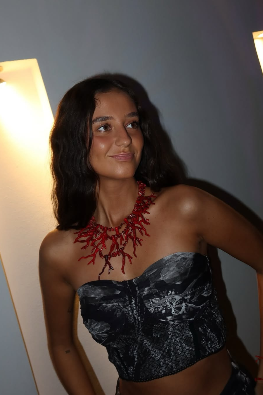 En esta edición, la joven apostó por un estilismo sofisticado y contemporáneo compuesto por una chaqueta de tweed en tono rosa, combinada con una blusa coordinada y unos shorts de piel negros que completó con unas botas altas en el mismo color firmadas por Charo Ruiz. No se trata, sin embargo, de una elección puntual. En veranos anteriores, Victoria Federica había recurrido a la marca, como demuestra el top de algodón estampado en blanco y negro que lució hace dos temporadas, una pieza de escote corazón y silueta bustier que sintetiza a la perfección el ADN de la firma.