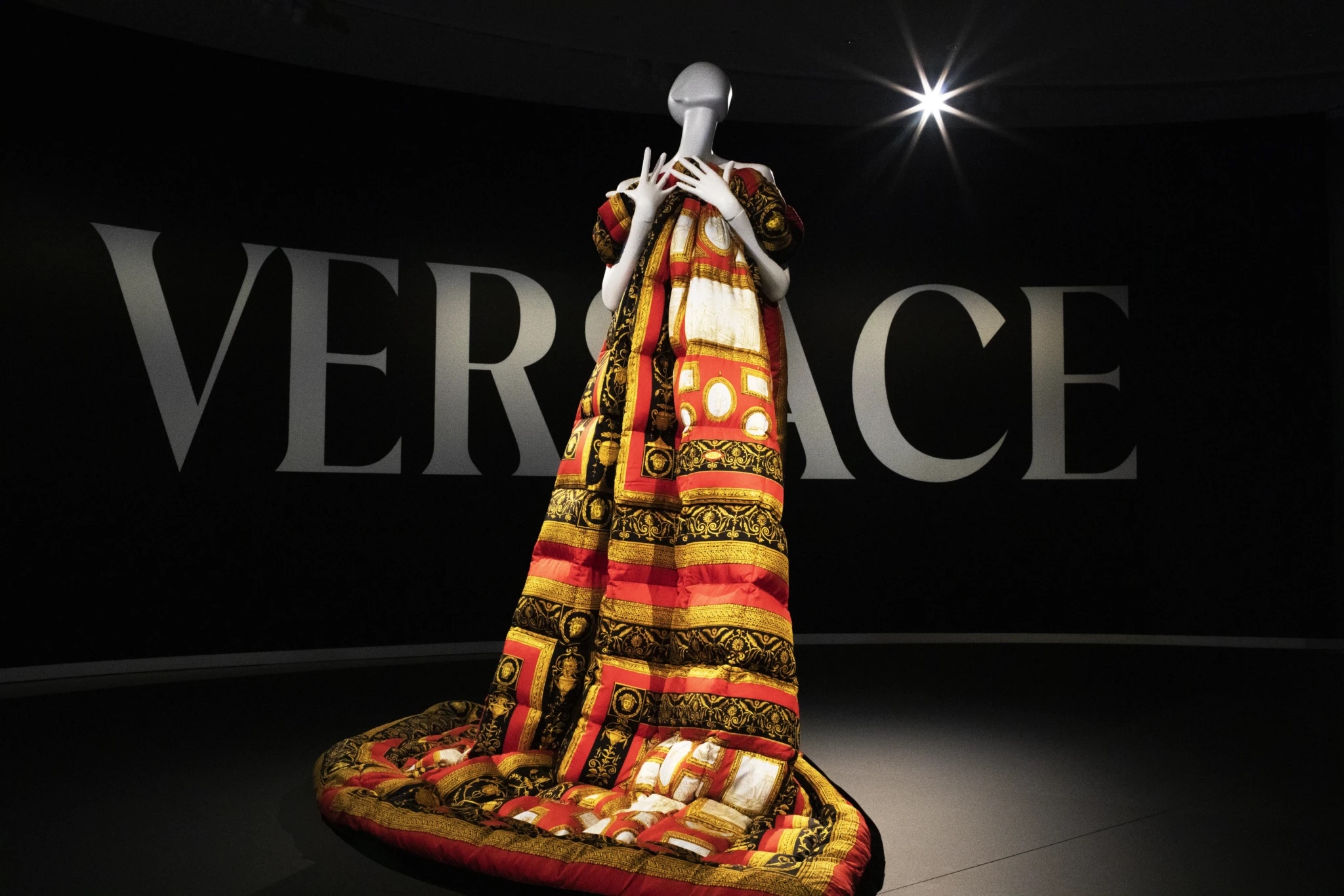 Con una escenografía de estilo pop audaz diseñada por Nathalie Crinière, la exposición recorre una trayectoria dedicada por completo a la creación y revela las múltiples fuentes de inspiración que moldearon el universo de Versace: sus inicios en el taller familiar de Calabria, la iconografía de la religión católica, la influencia de la escultura griega y la ópera italiana, así como su fascinación por el Barroco y sus opulentos estampados.