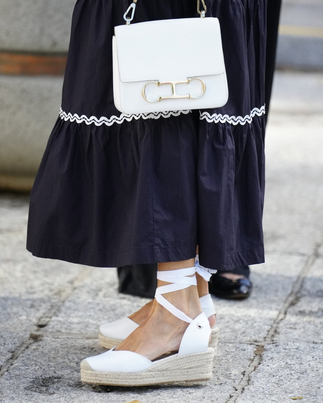 En lugar de tacones, Letizia sigue firmando con alpargatas blancas de cuña media. Un par que respira verano en cada paso—esparto, lazadas al tobillo, silencio cómodo—y resiste con dignidad el paso de estaciones.